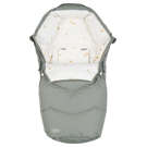 The back has openings for a stroller harness, and the holes are covered with Velcro flaps to protect against the cold. There are also silicone stripes on the back to ensure that the stroller sleeping bag doesn't slide around in the stroller. The stroller sleeping bag is designed to fit most baby carriages and strollers equipped with a 3-point harness or a 5-point harness.