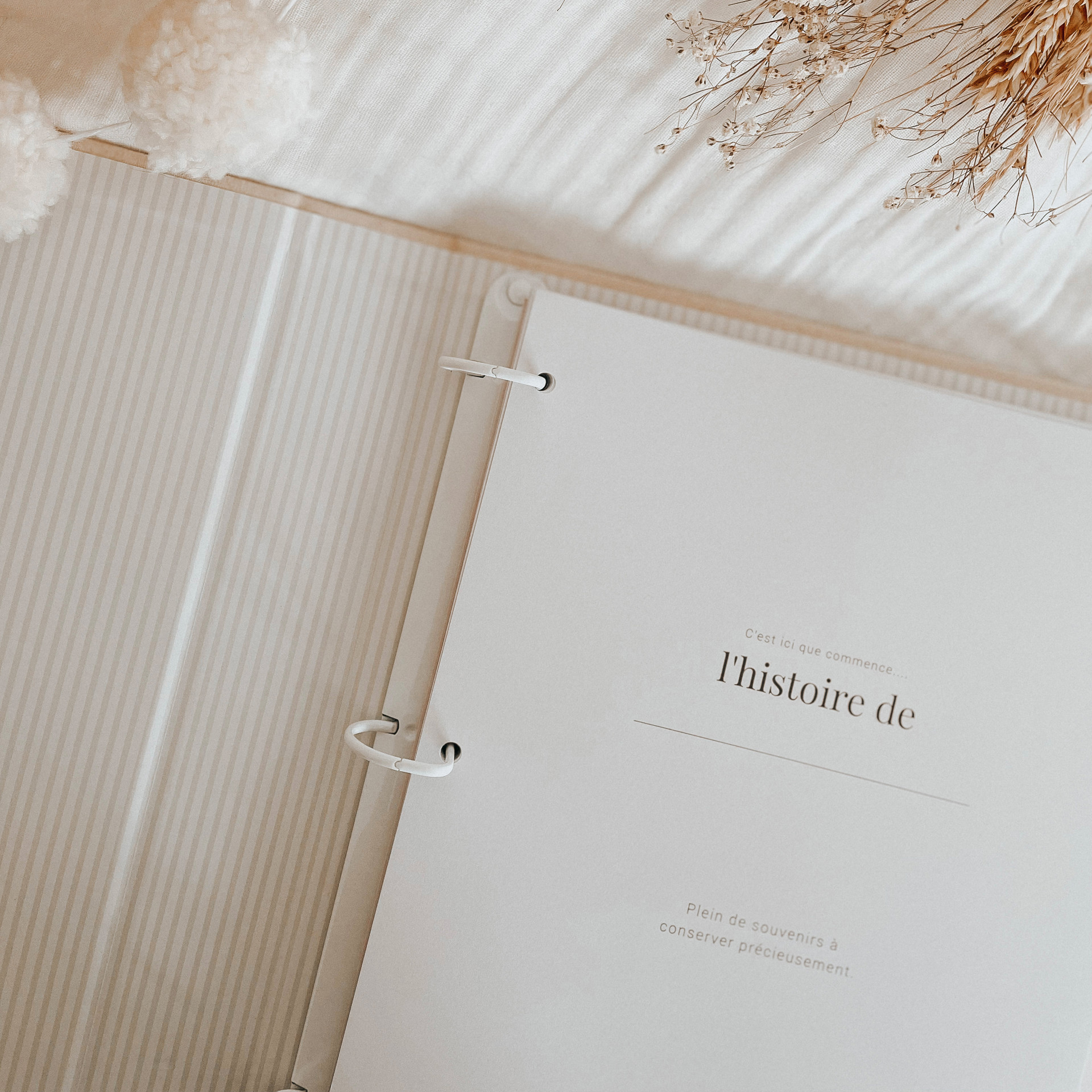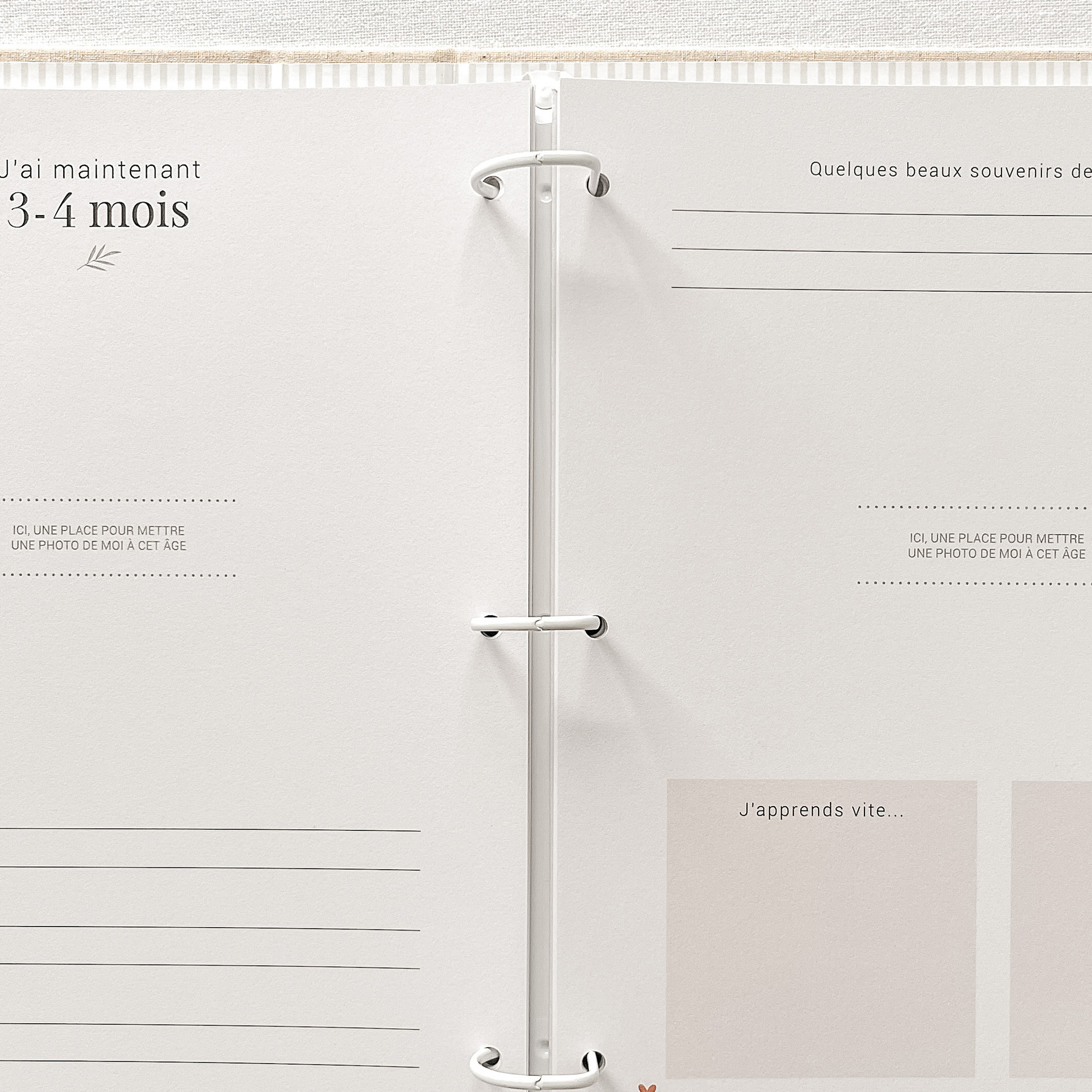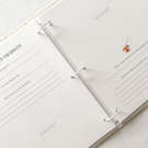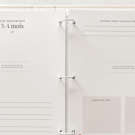 The book contains: My family, My ultrasound, In mummy's tummy, Second trimester, Boy or girl, Third trimester, My shower, Mummy's diary, Cuckoo me! Leaving the hospital, Coming home, My room, My mini footprints, I'm now 0-2 months, I'm now 3-4 months, I'm now 5-6 months, I'm now 7-8 months, I'm now 9-10 months, I'm now 11-12 months, My first times, My first teeth, My first meal, My first full night's sleep, My first words, My first steps, My first vacation, My first Christmas, My first haircut, Beautiful moments, Happy first birthday, Picture 1 year, My favorites, Our first times, A little note for you, envelope.