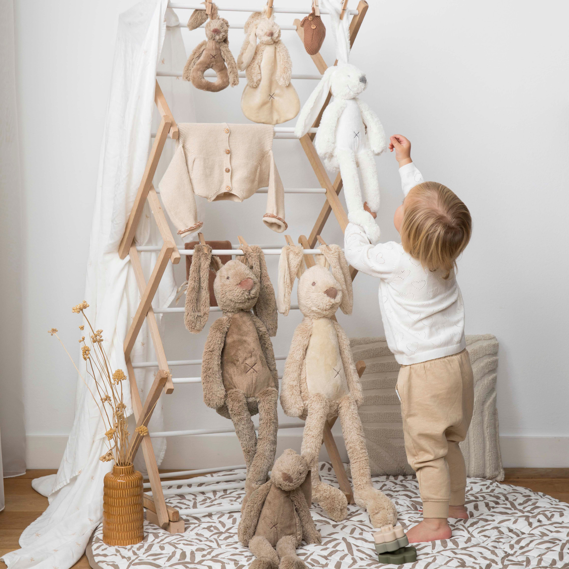 Rabbit Richie, the most popular bunny in our collection, in a neutral brown version. This Richie Rabbit comforter is a huge hit, he is wonderfully soft and cuddles like the best!