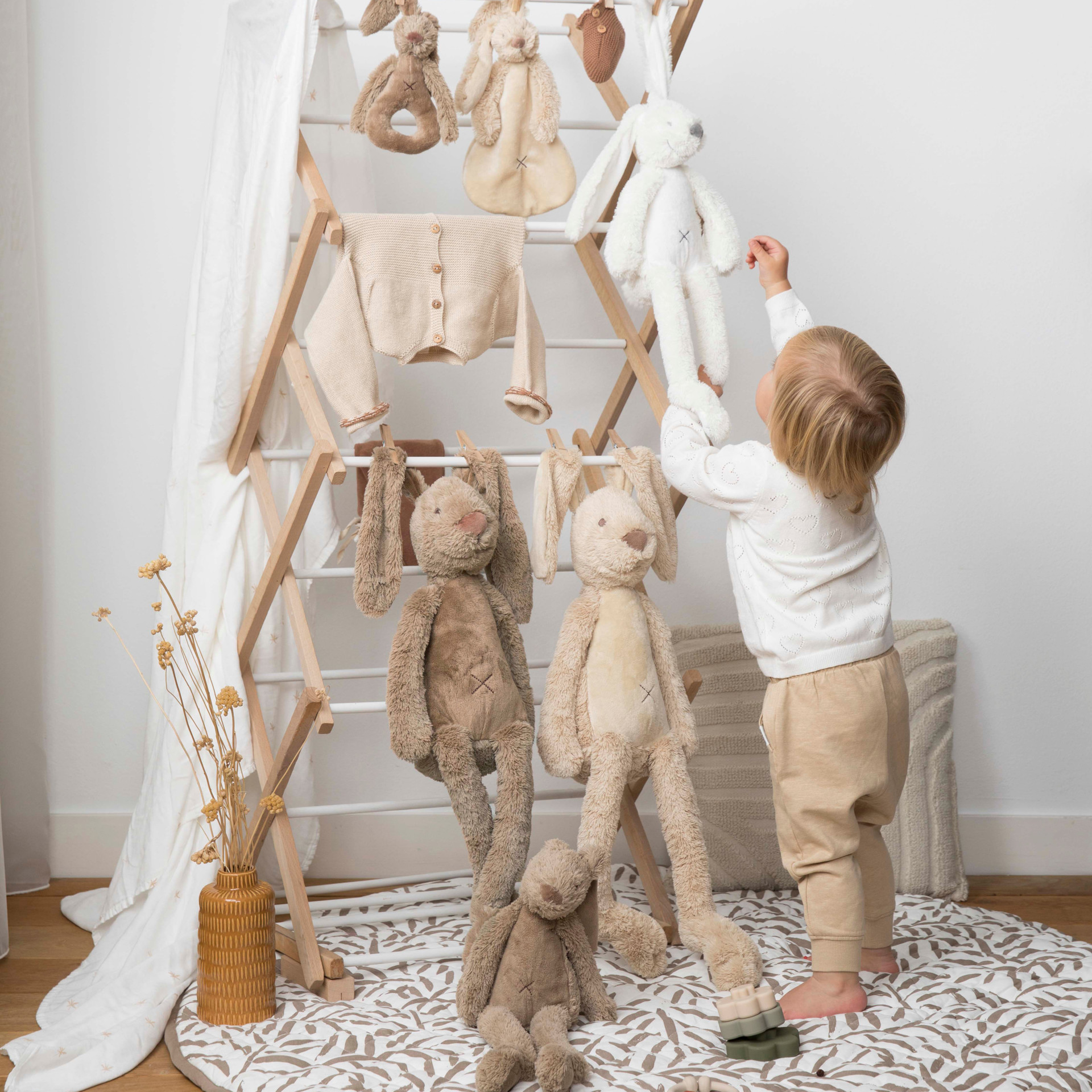 Rabbit Richie, the most popular bunny in our collection, in a neutral brown version. This Richie Rabbit comforter is a huge hit, he is wonderfully soft and cuddles like the best!