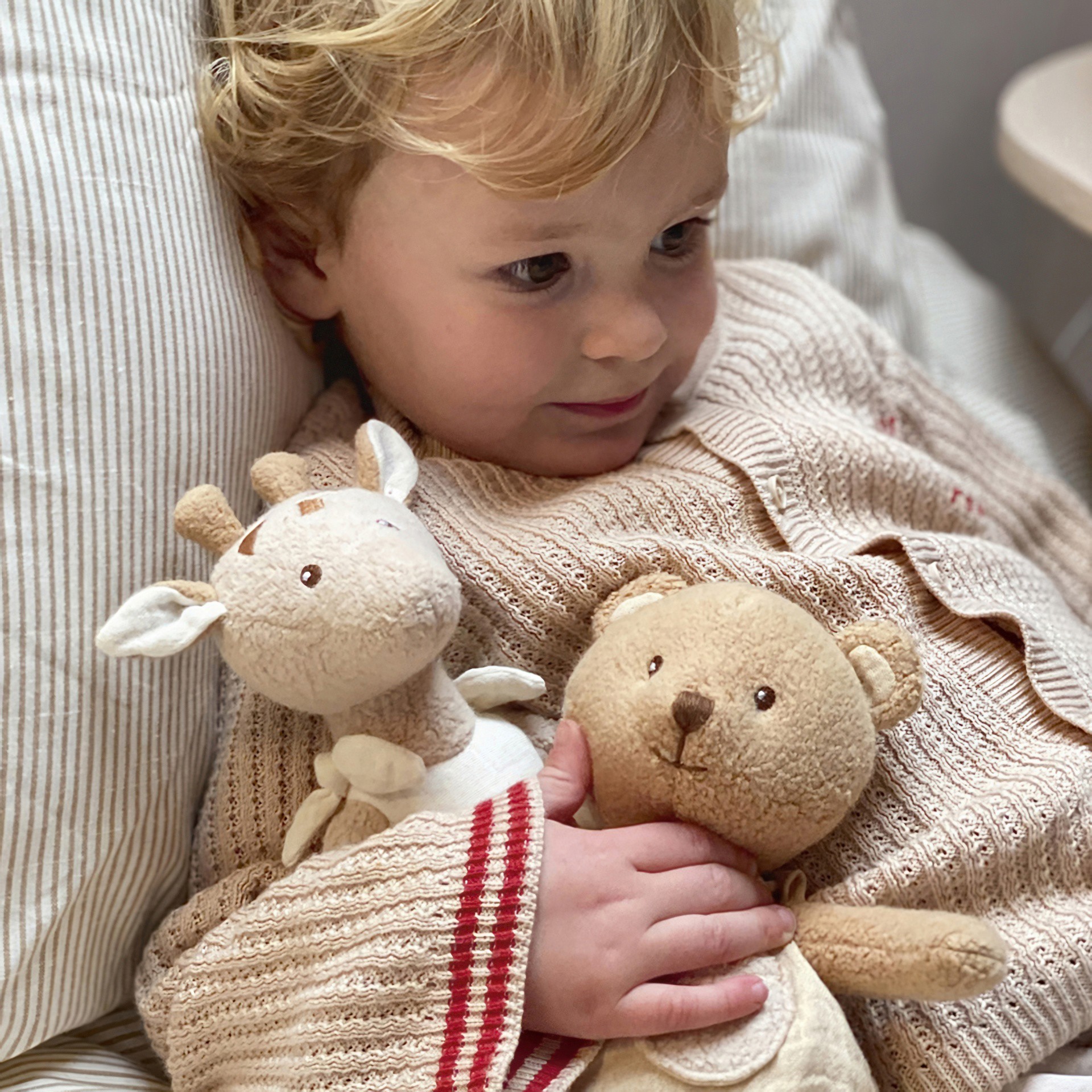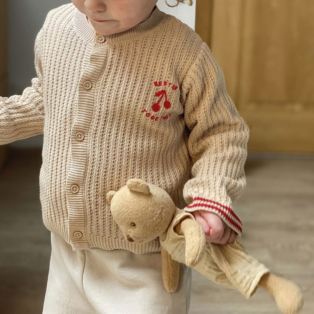 Marcel is a very soft bear, made of organic cotton and filled with recycled polyester. A wonderful companion for every newborn.