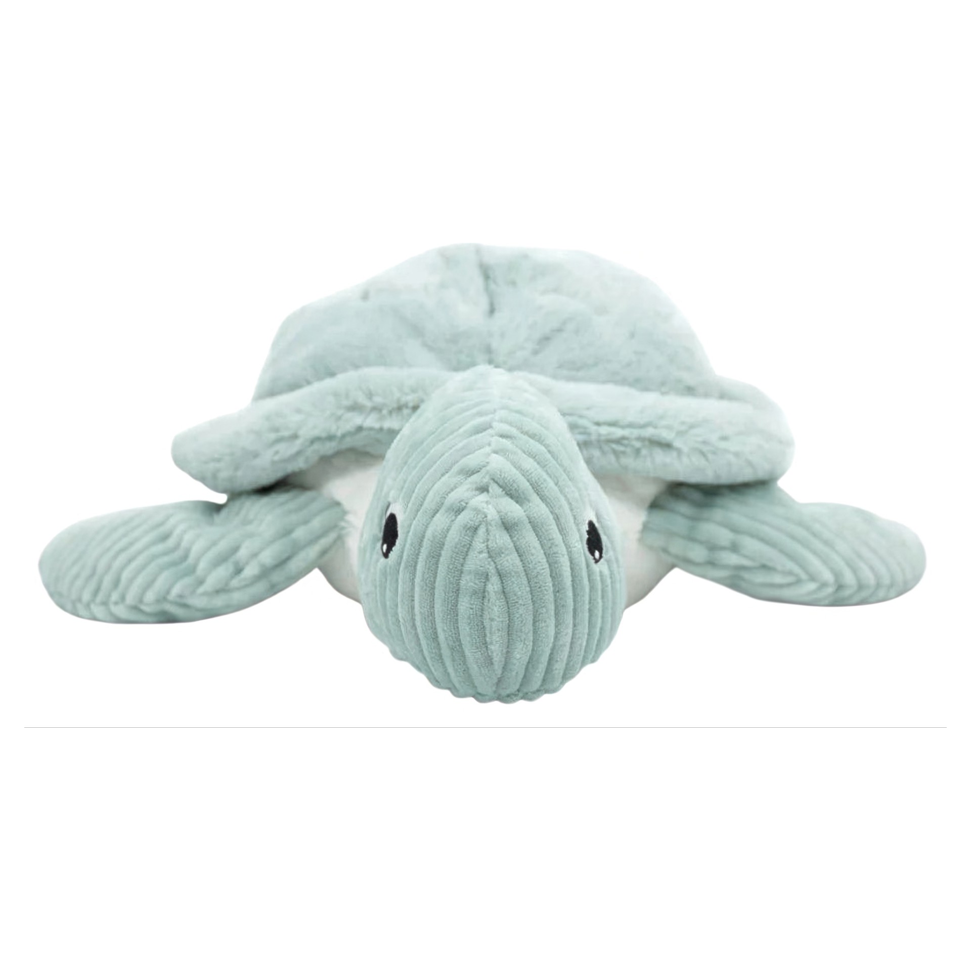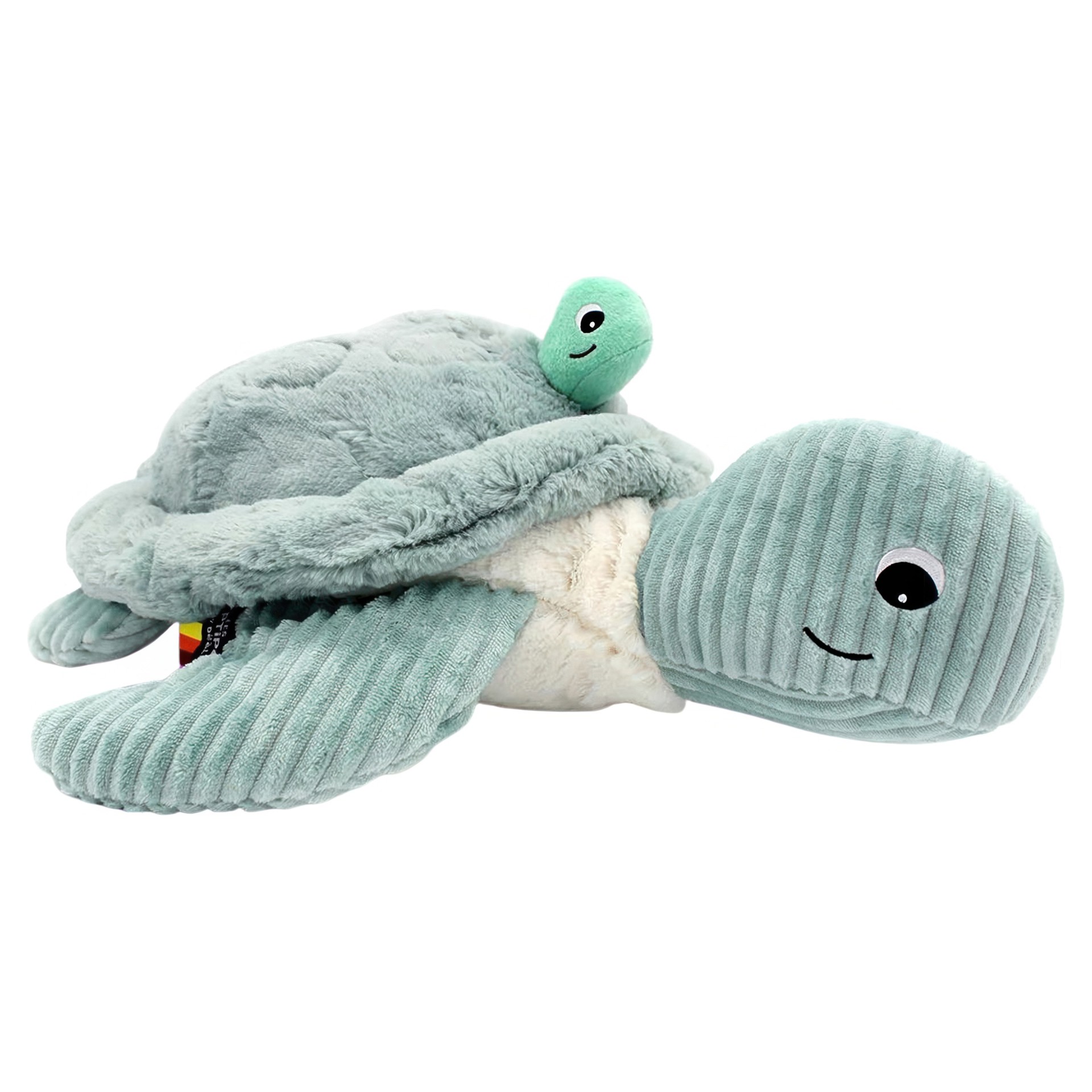 The 50 cm giant turtle plush with baby is made of soft corduroy.