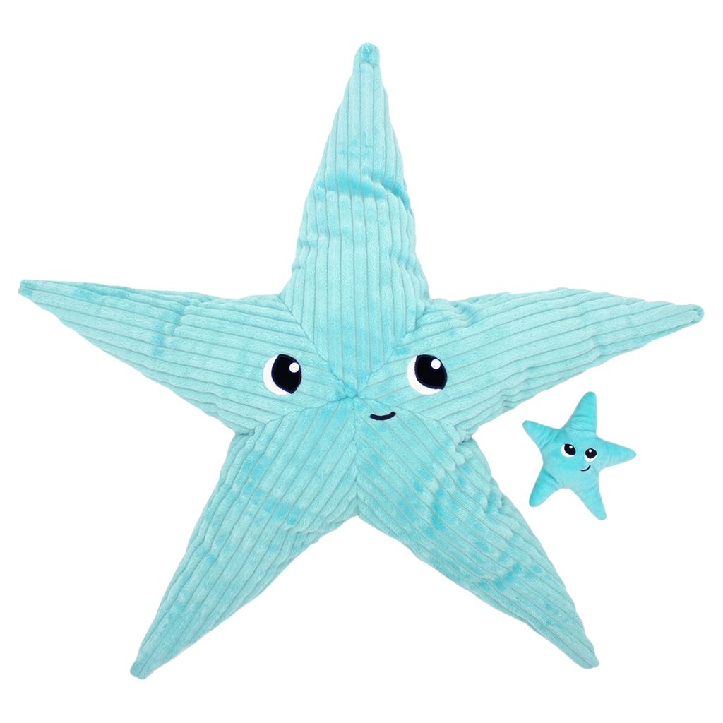 The 62 cm starfish mother and baby plush toy in soft corduroy.