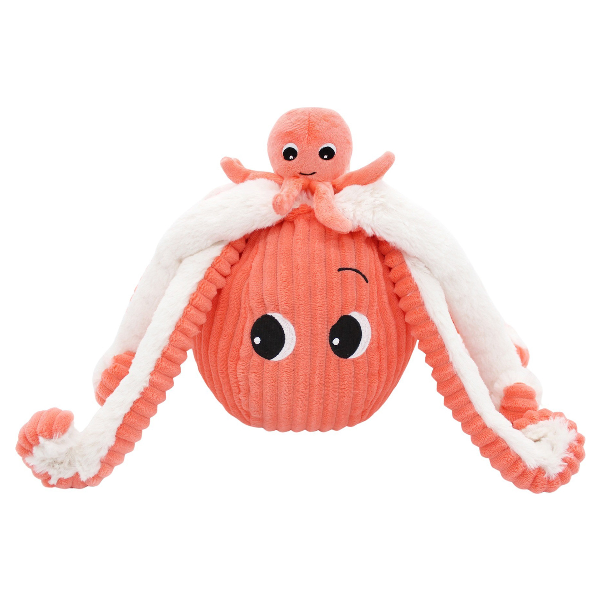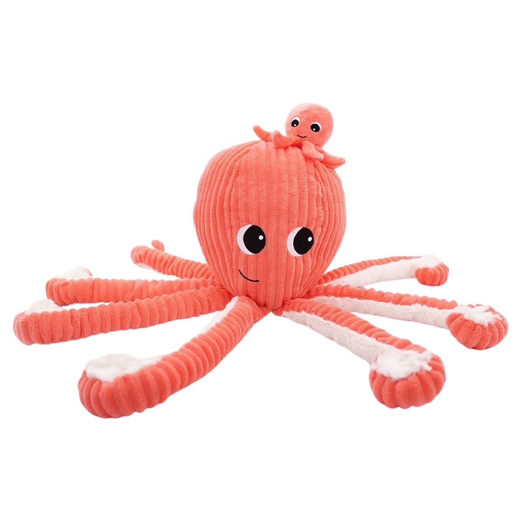 Take a good look inside, and you might just find 8 extra arms to cuddle up to when you're feeling a bit under the weather! The 45 cm Mommy & Baby Octopus orange plush is made of soft corduroy.