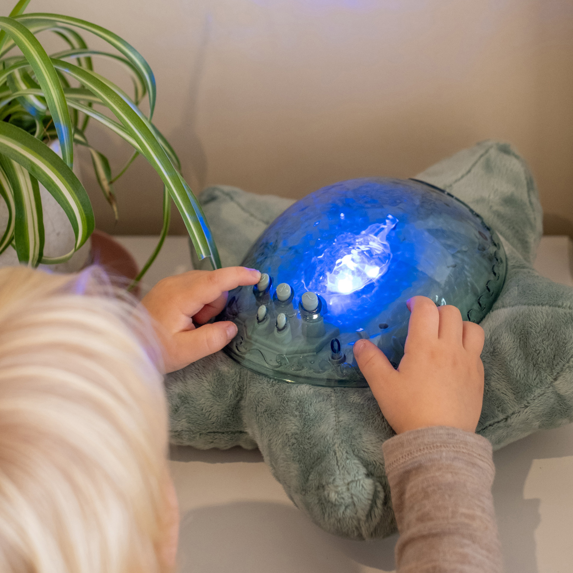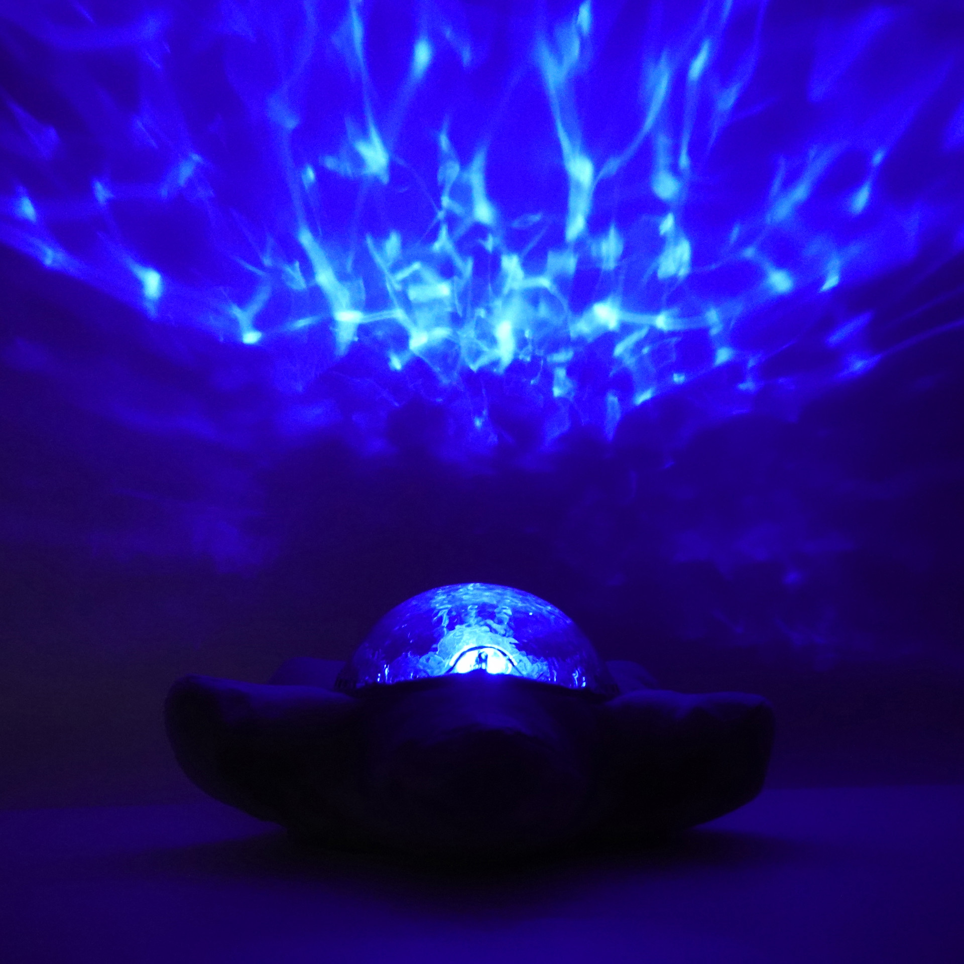 Its immersive aquatic light projections, with 5 color options (blue, green, red, aurora borealis or multicolor cycle) create a relaxing visual ambience.