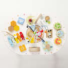 The Petilou table is composed of multiple sensory activities that will not fail to stimulate the curiosity of the little ones. Explore the labyrinth in the center with its integrated shape box, the rainbow xylophone, the sensory doors to discover and rediscover, the gears, the rainbow in the rain or the alphabet printed all around the table with soft lines.