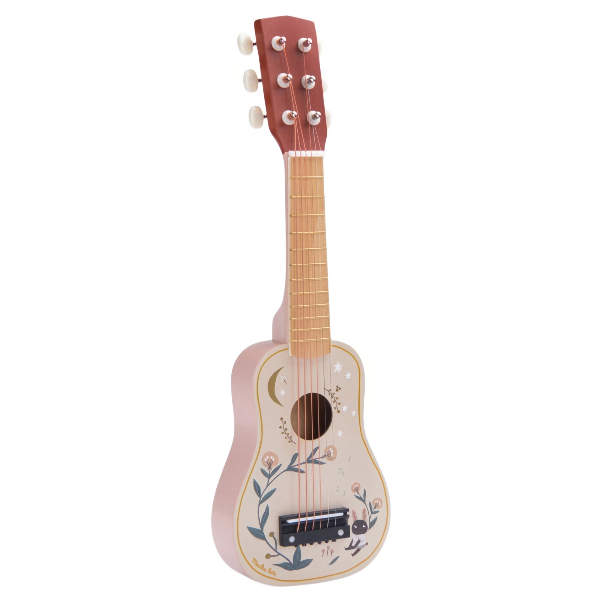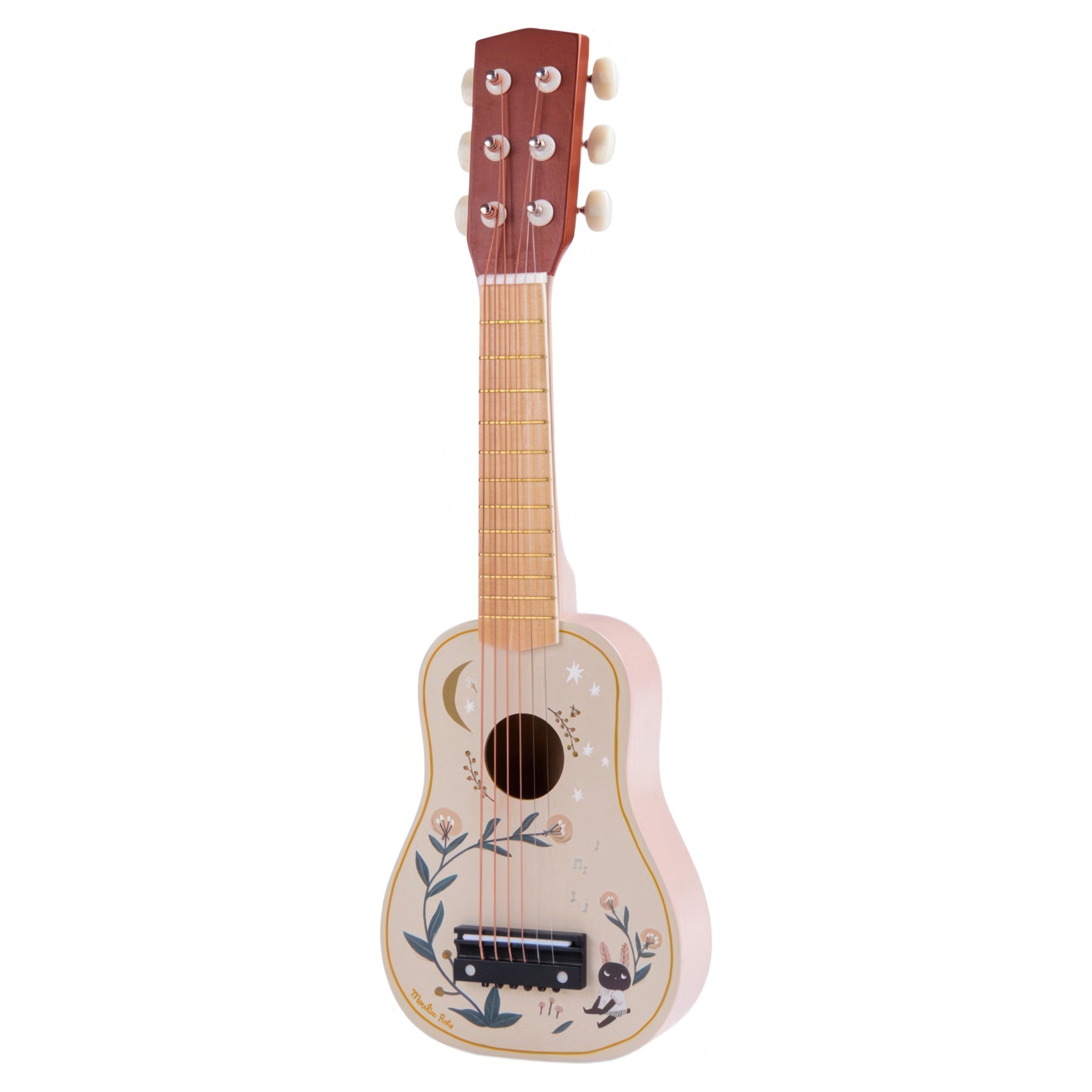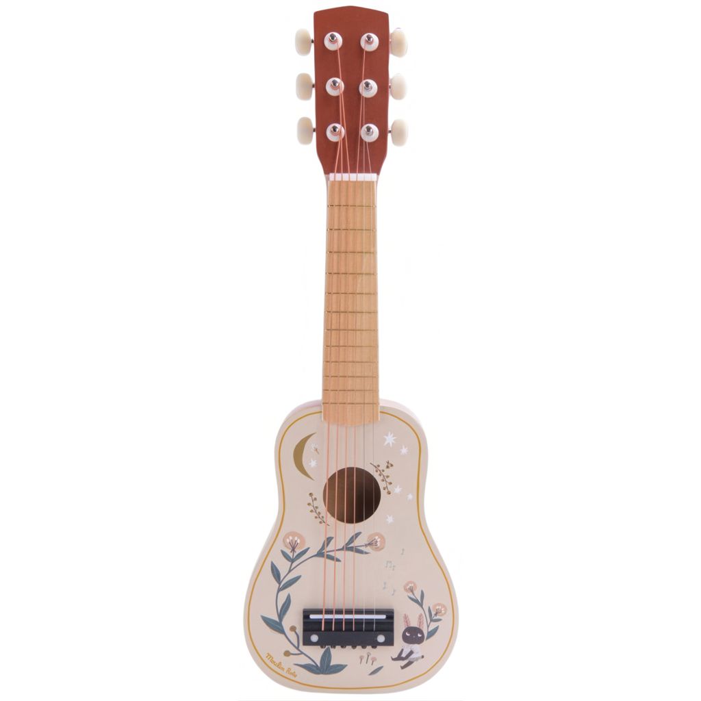 For little musicians, a wooden guitar adorned with poetic illustrations from the 'Après la pluie' collection, featuring 6 metal strings just like the pros!