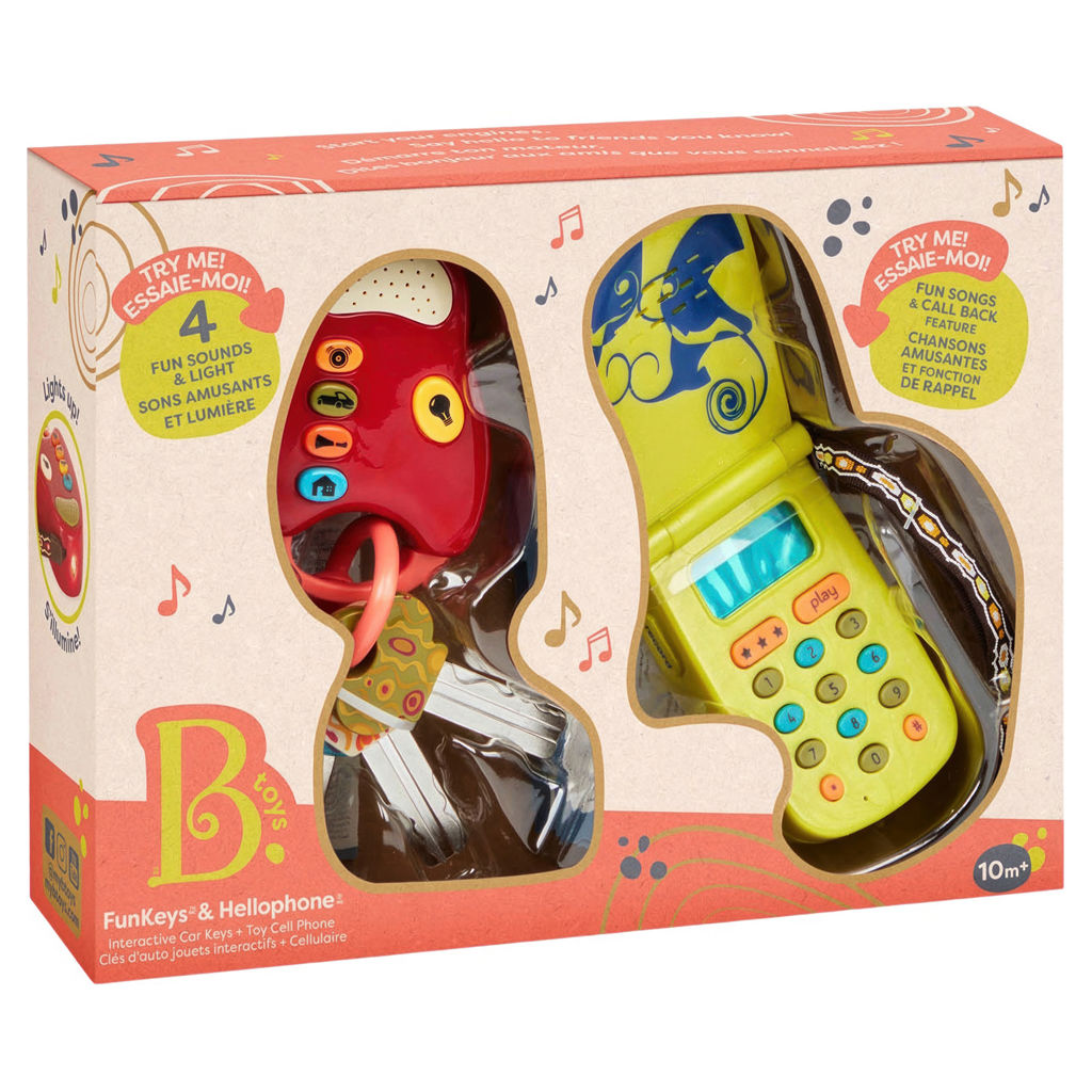 Combining the entertaining ''Hellophone'' and the fun ''FunKeys'' Hellophone: A fun phone that returns your call!  Parents, record messages for your child's enjoyment, with 3 pre-recorded messages, lots of sounds and several songs.