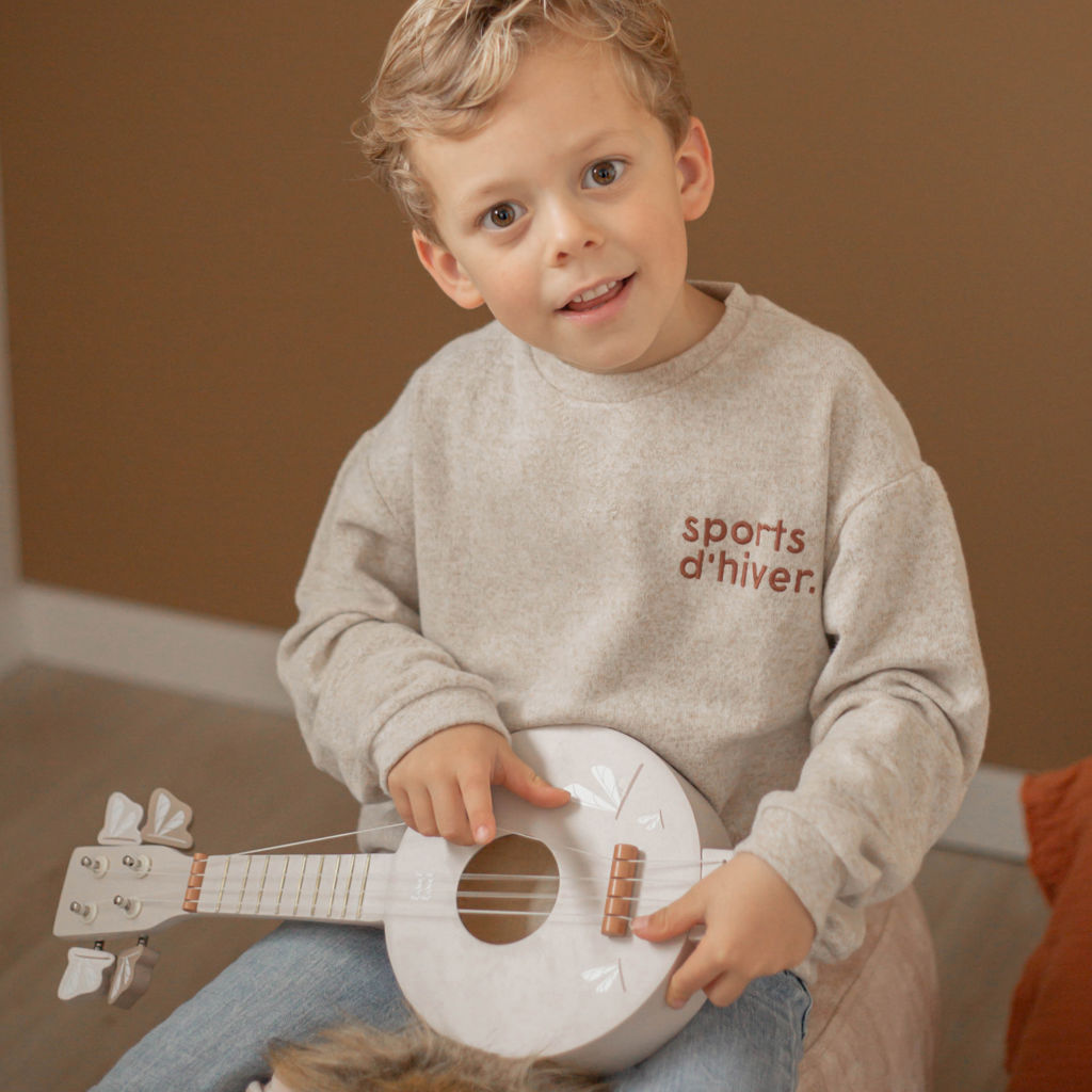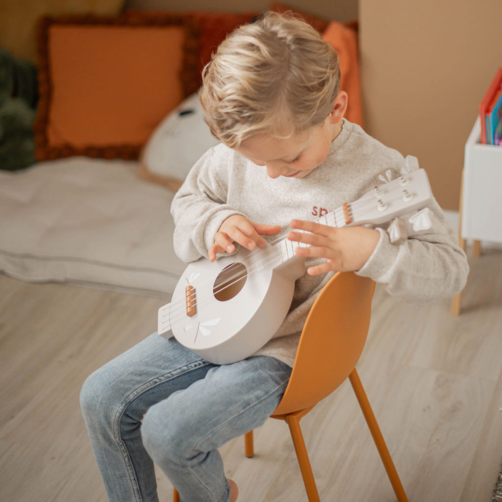 Play the right chords with this cute little banjo.The tuning keys can be adjusted for the perfect tones. Expand your little band with one of Label's other instruments!