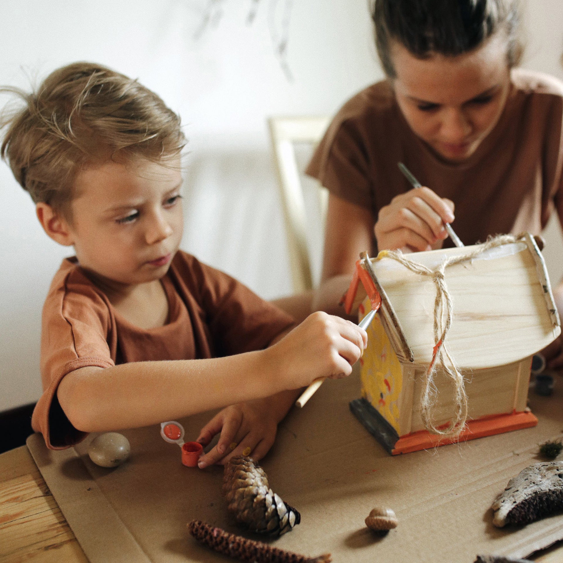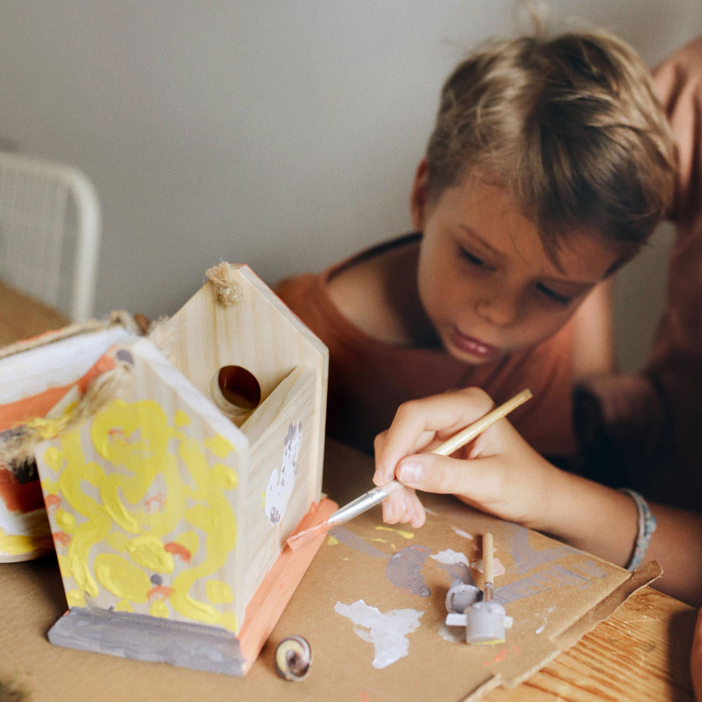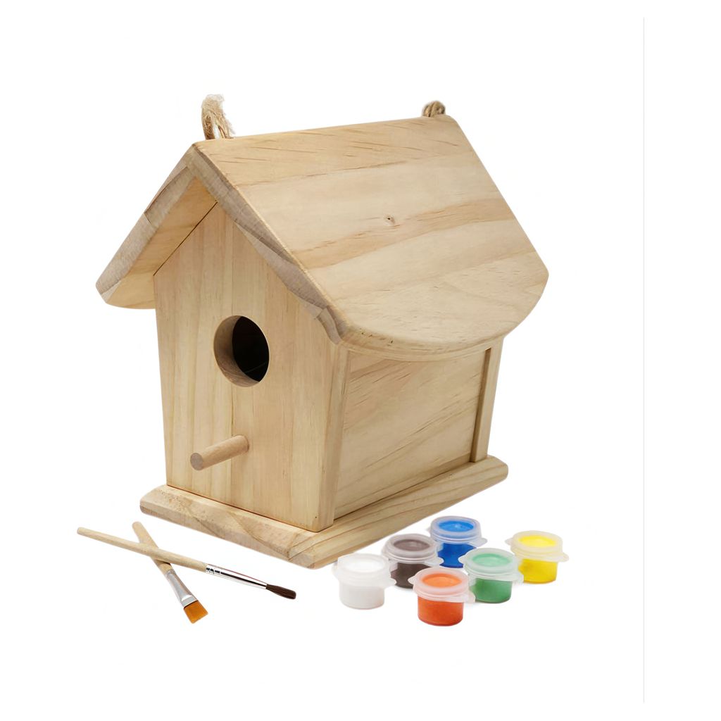 With a natural wooden design, 2 provided paint brushes and 6 water-based acrylic paints, your little one can transform this house into a magical home for birds.