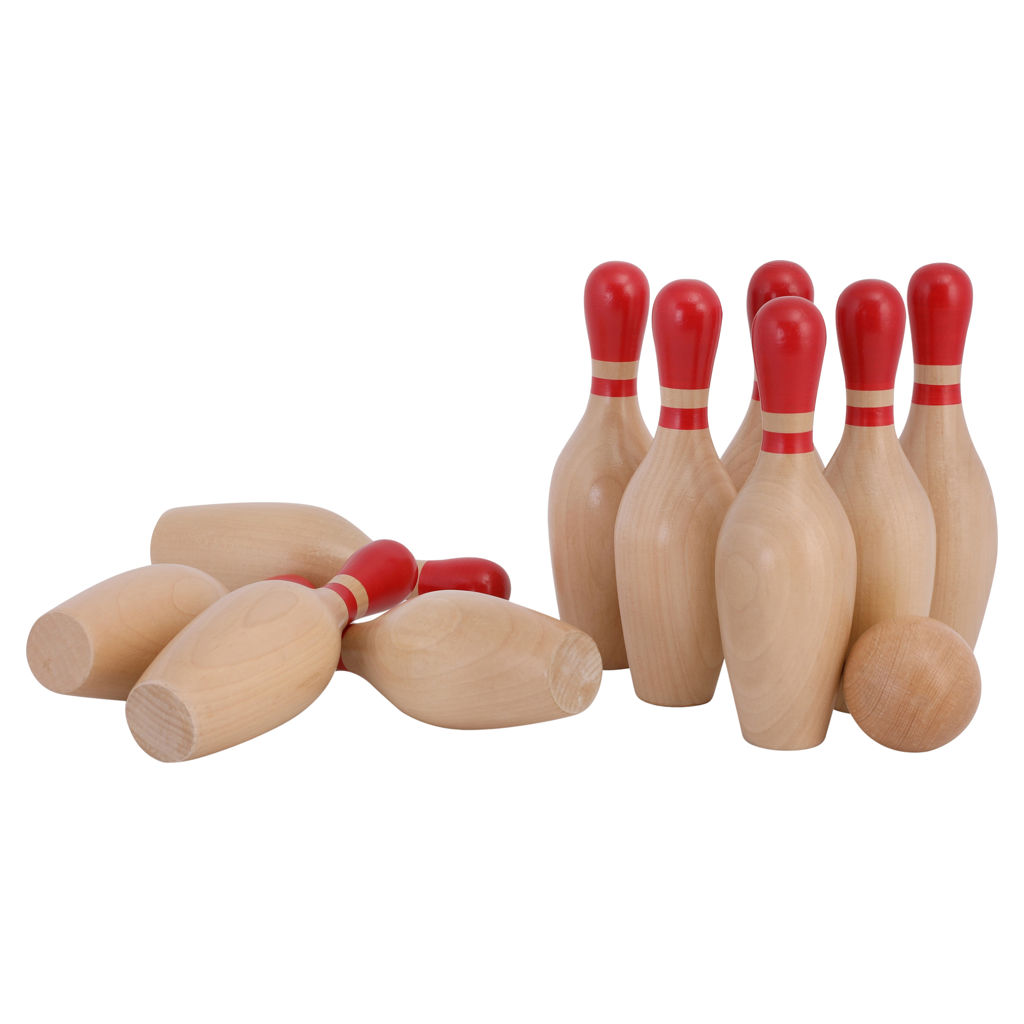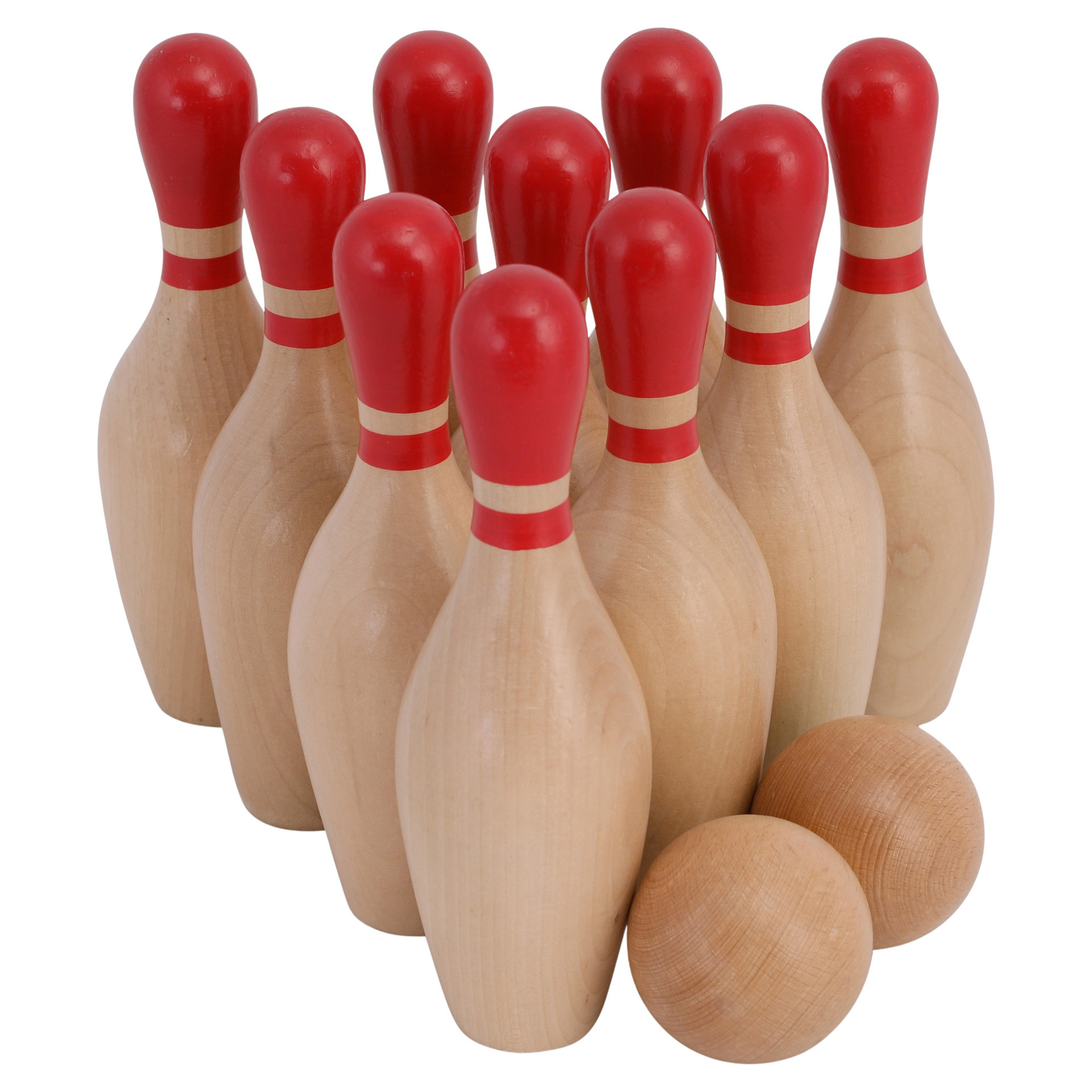 The 10 pins are child-safe, made from solid rubberwood and finished with a non-toxic certified red pigment. Each set includes 2 rubberwood balls and a convenient birchwood crate for easy storage and transport. Play a fun game of bowling at the park, in the backyard, at a friend’s house, or even on the beach! This handcrafted game is the perfect interactive activity for the whole family.