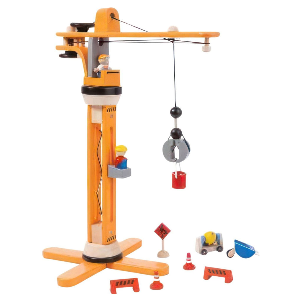 This set consists of a crane, construction sign, street hazard signs, concrete mixer, and 2 figures of a foreman and worker.