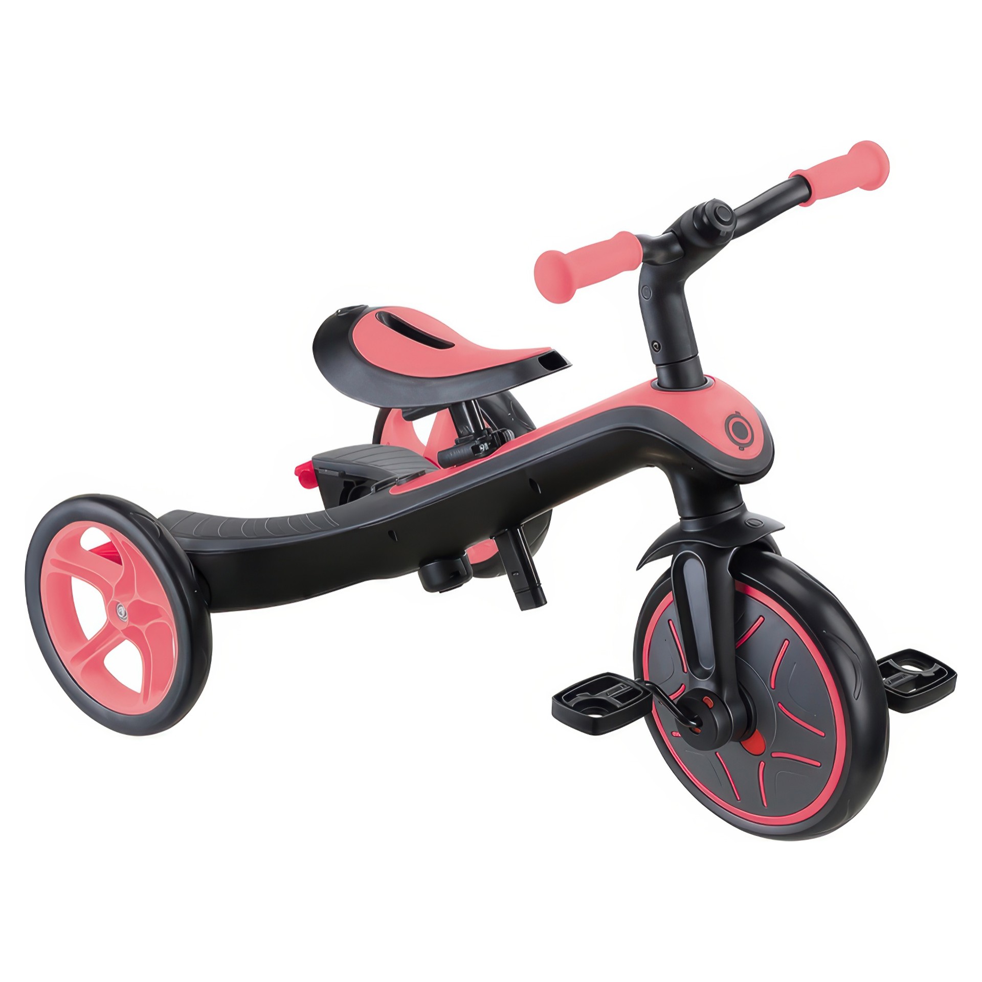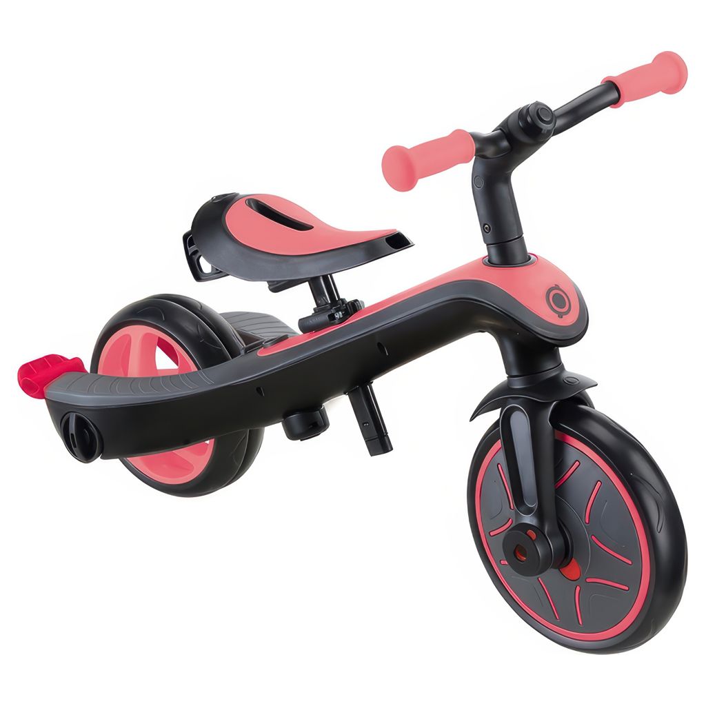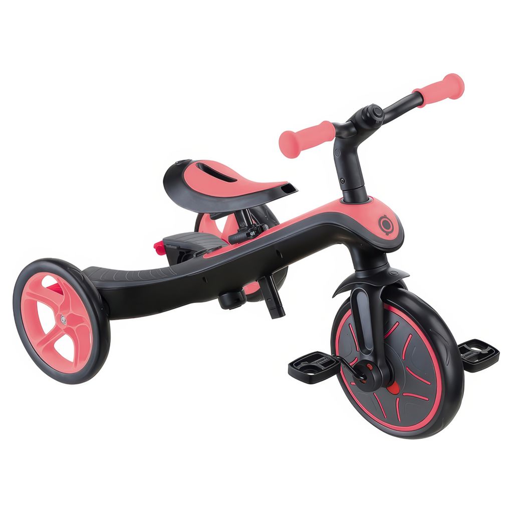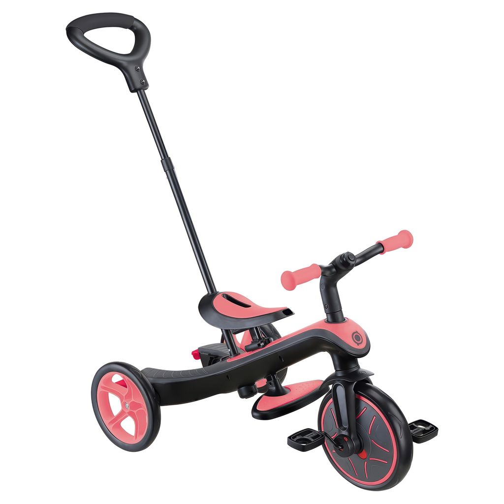 EXPLORER TRIKE 4in1 comes with a 100% tool-less design (no tools needed to transform!), a patented wheel mechanism, a 2-height adjustable parent handle, 2-height adjustable saddle, high-back seat, removable footrest, EVA foam wheels, and smart pedal storage to provide even more functionality!