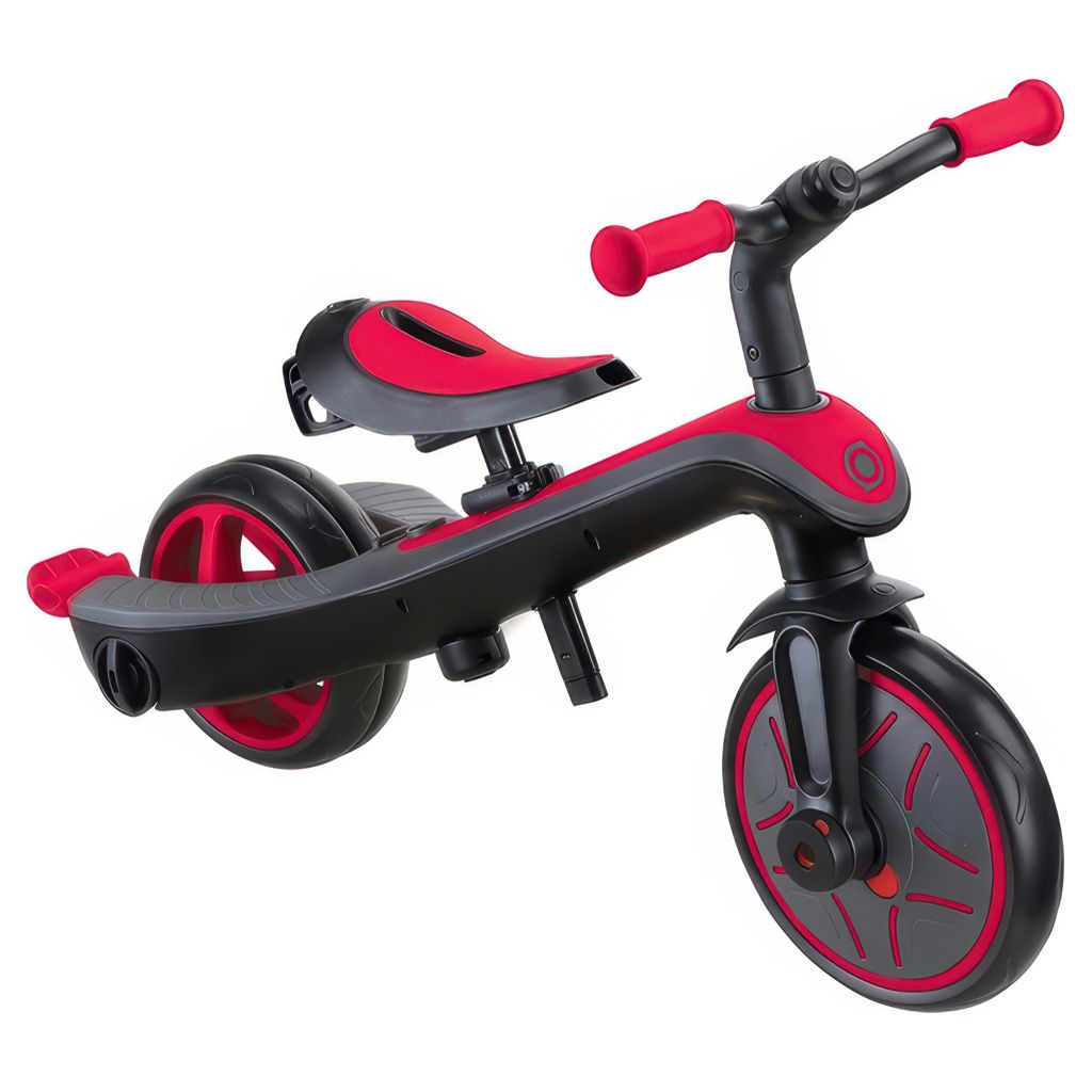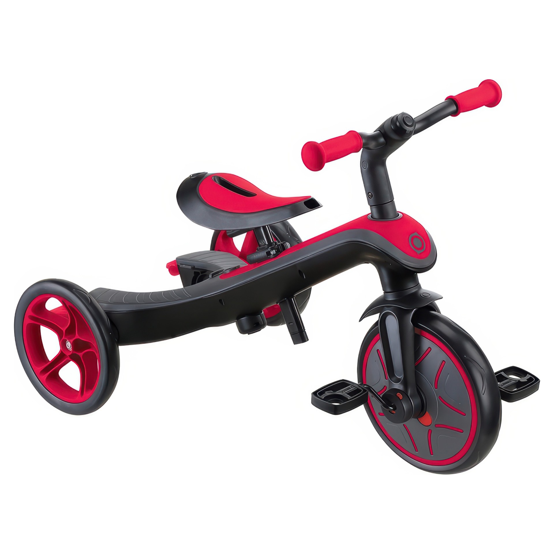 EXPLORER TRIKE 4in1 comes with a 100% tool-less design (no tools needed to transform!), a patented wheel mechanism, a 2-height adjustable parent handle, 2-height adjustable saddle, high-back seat, removable footrest, EVA foam wheels, and smart pedal storage to provide even more functionality!