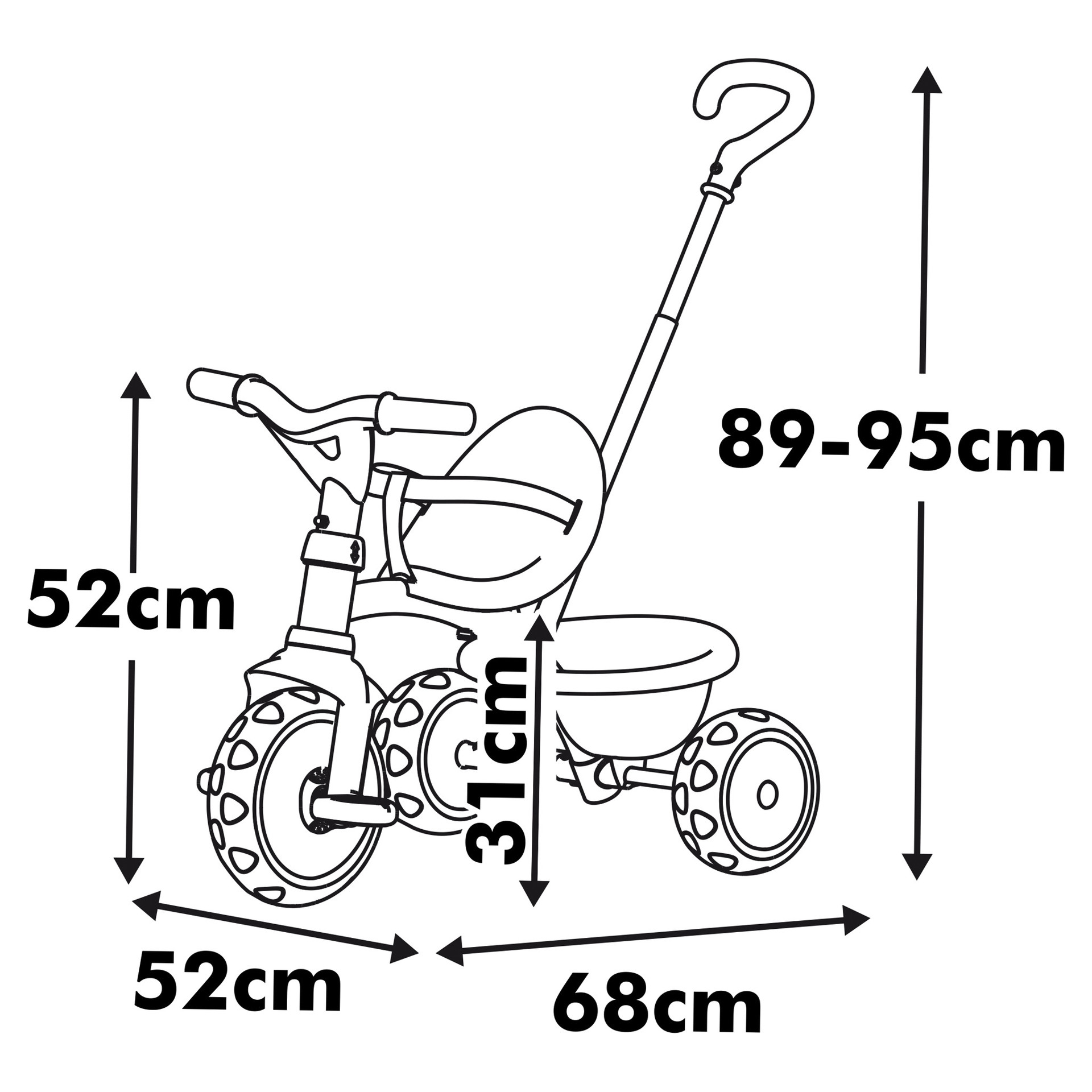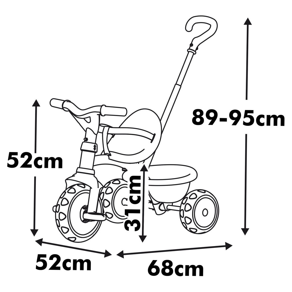 Thanks to the adjustable parent handle on 3 levels (max 95cms), and the free wheel system, you will easily steer the trike without your child interfering in the direction.