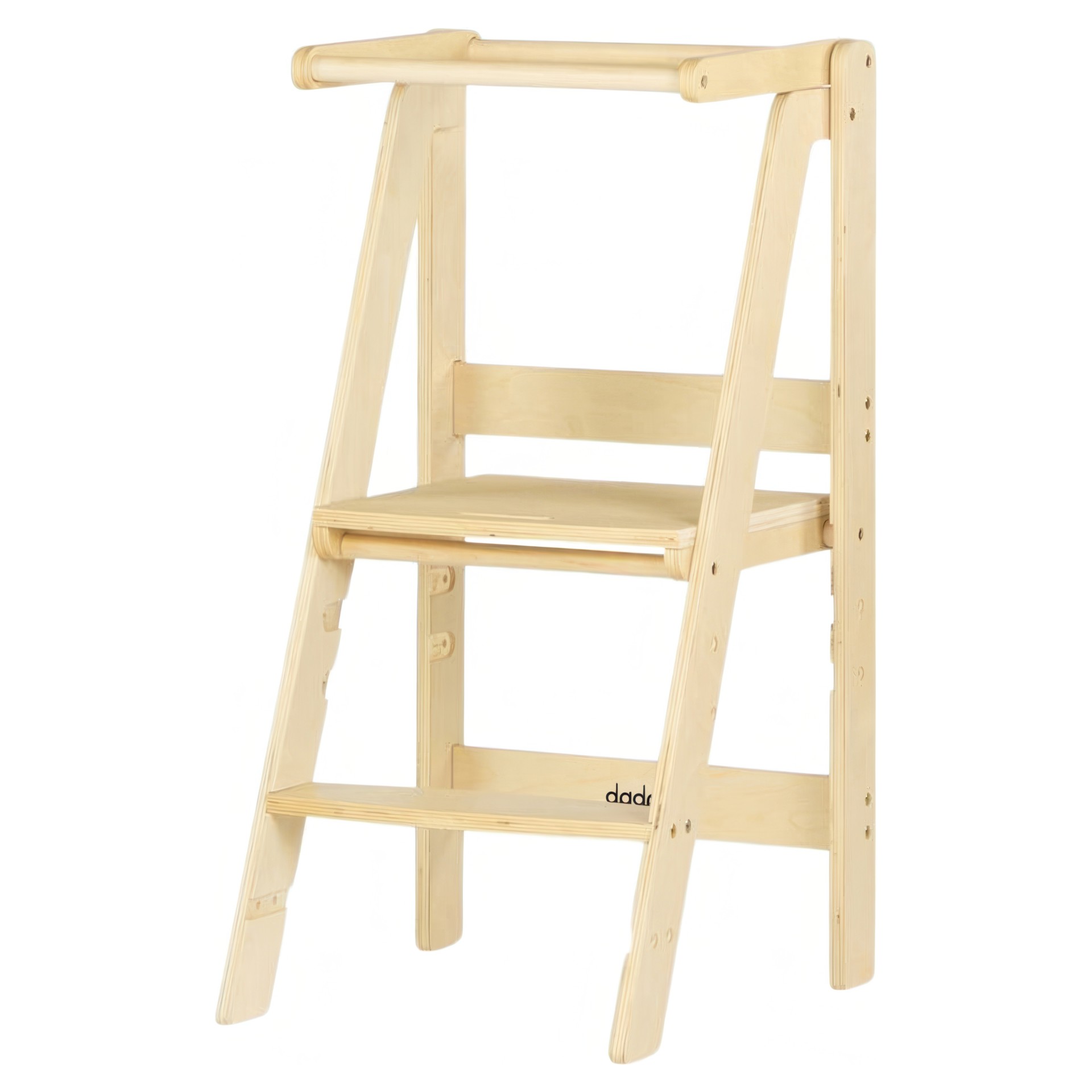 The Folding Toddler Tower is the perfect solution for small space living with a curious preschooler, with easy-to-adjust steps, baby-safe finishes, and a lightweight frame that makes it easy to get a boost when your toddler needs it, and easy to tuck away when they're done!