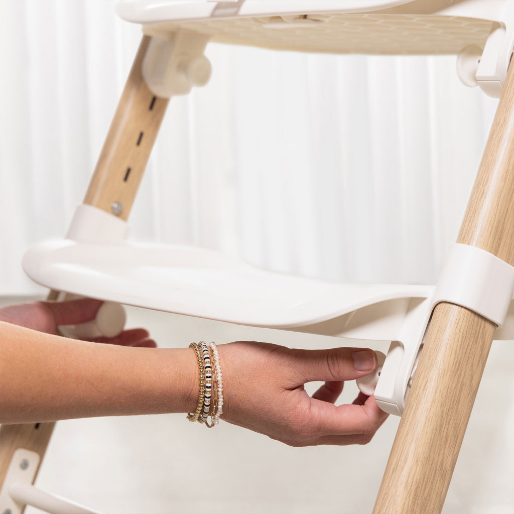 Its seat and footrest adjust to 4 positions, allowing your child to maintain an ideal posture, with hips, knees, and ankles aligned at 90° for proper support during meals.