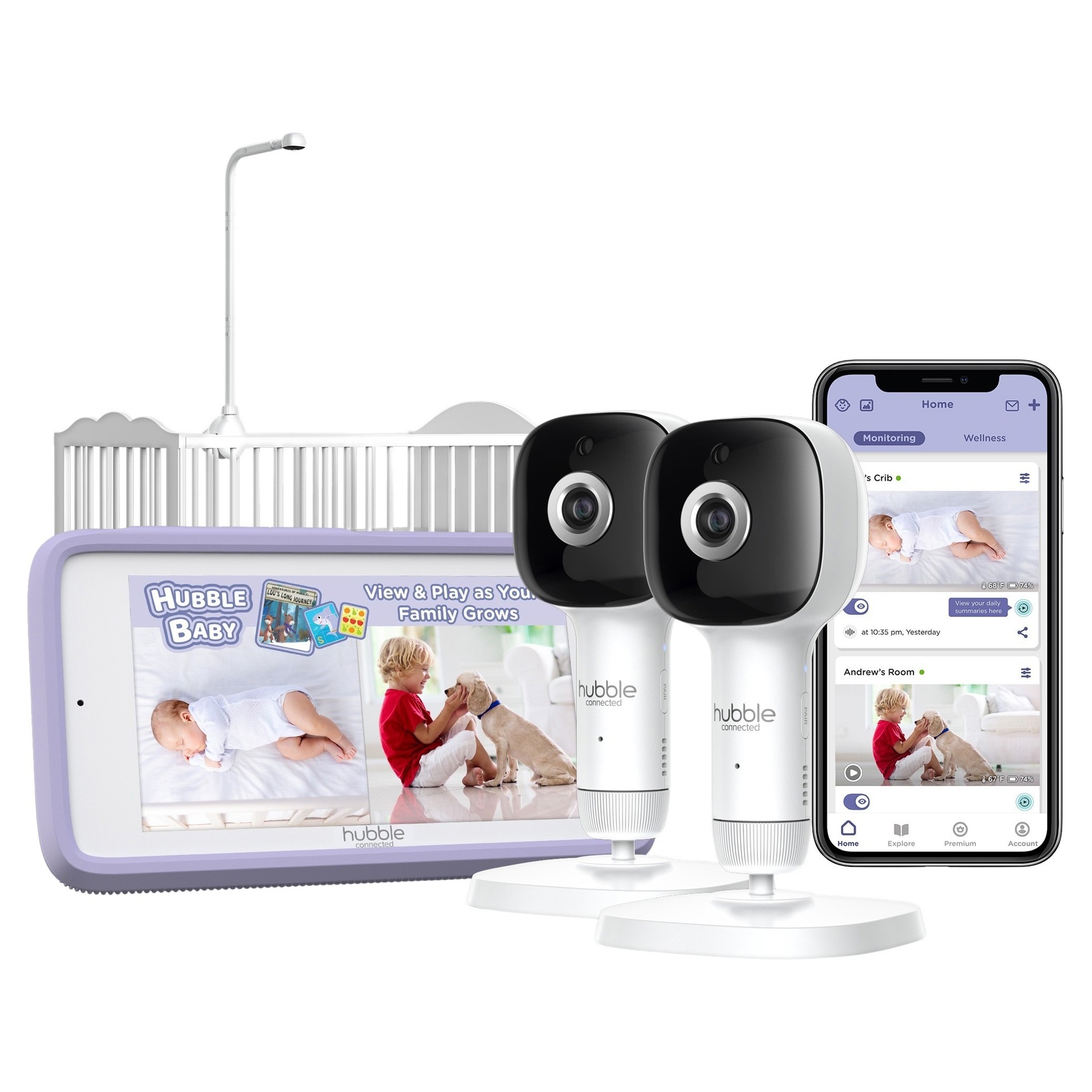 Discover the SkyVision AI Pro baby monitor by Hubble Connected, a revolutionary smart device designed to provide security, convenience, and entertainment for both babies and parents.