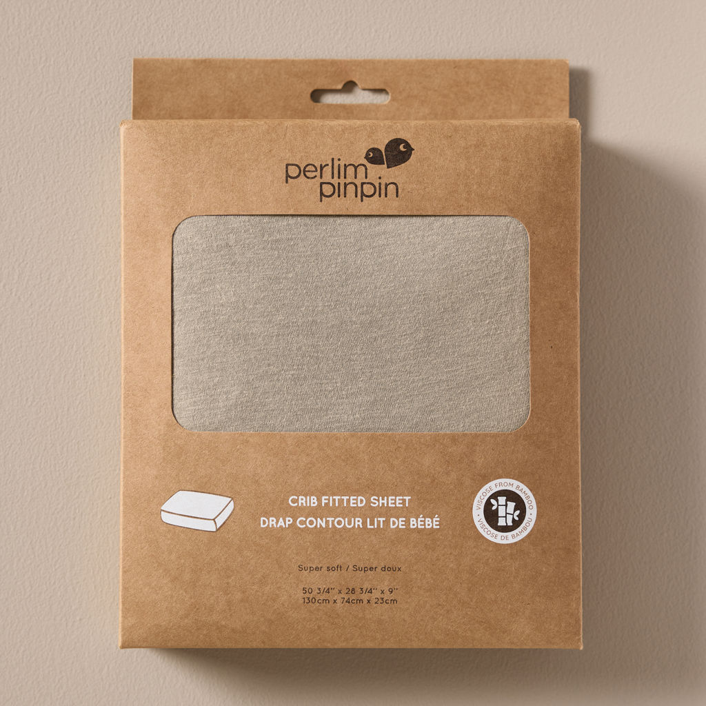 Crib bamboo Taupe fitted sheet. This is a baby nursery must-have ! Canadian design.