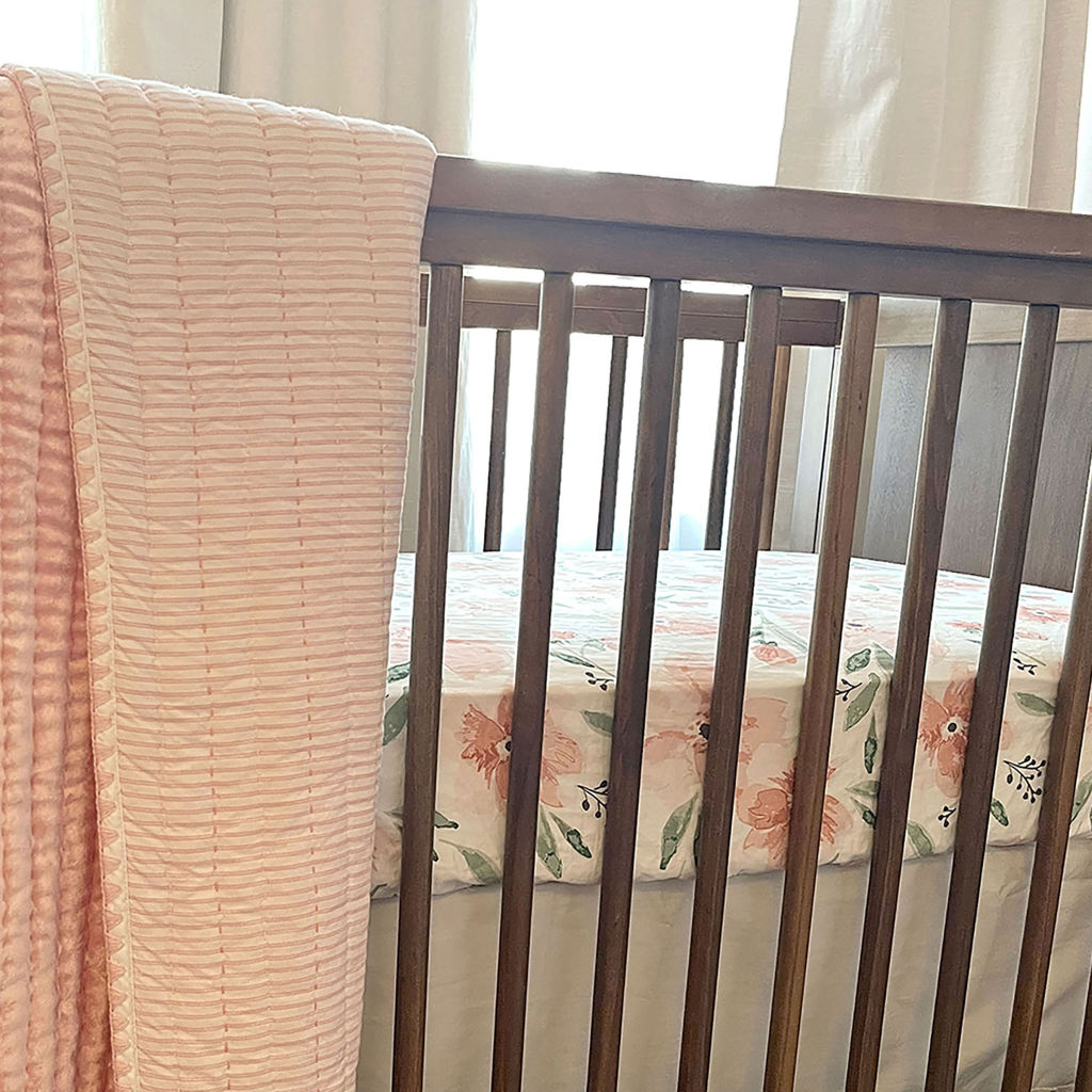 If you're looking for the perfect feminine and whimsical crib sheet for your baby's nursery, the floral Parker Fitted Crib Sheet is perfect!