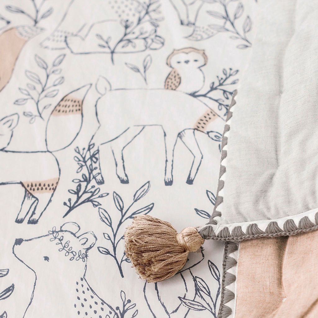 Inspired by the natural and joyfulness of childhood, the Ezra Collection invokes a sense of play and mischief. Baby blankets and nursery décor feature rich earthen hues of amber, river blue and copper. Frankie Fox and his forest friends punctuate these stylish yet soft handmade designs.