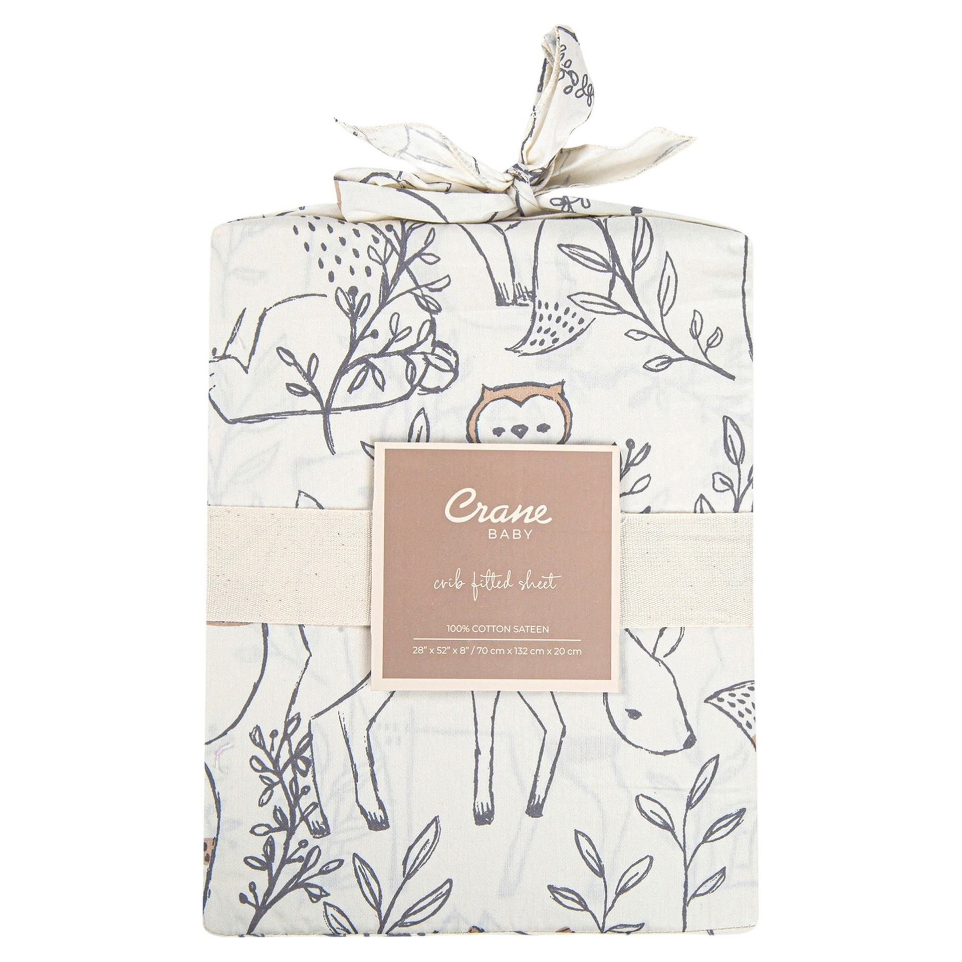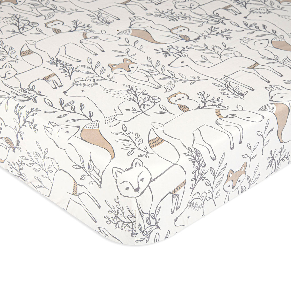 For a full day of fun and play or a soothing nap in the afternoon sun.Foxes and deer and owls and bears, oh my! Dress your baby's crib in a comfortable 100% cotton sateen fitted crib sheet.