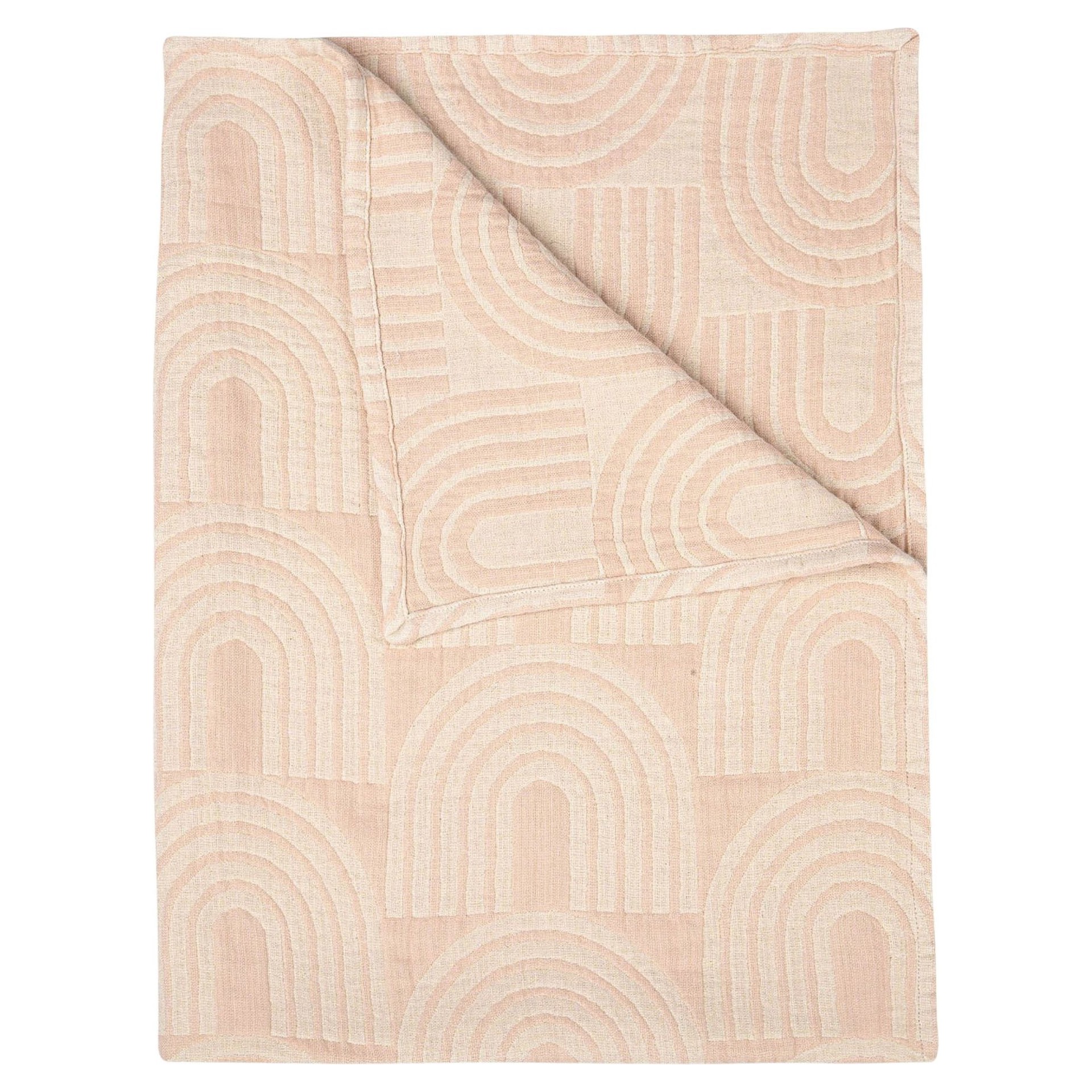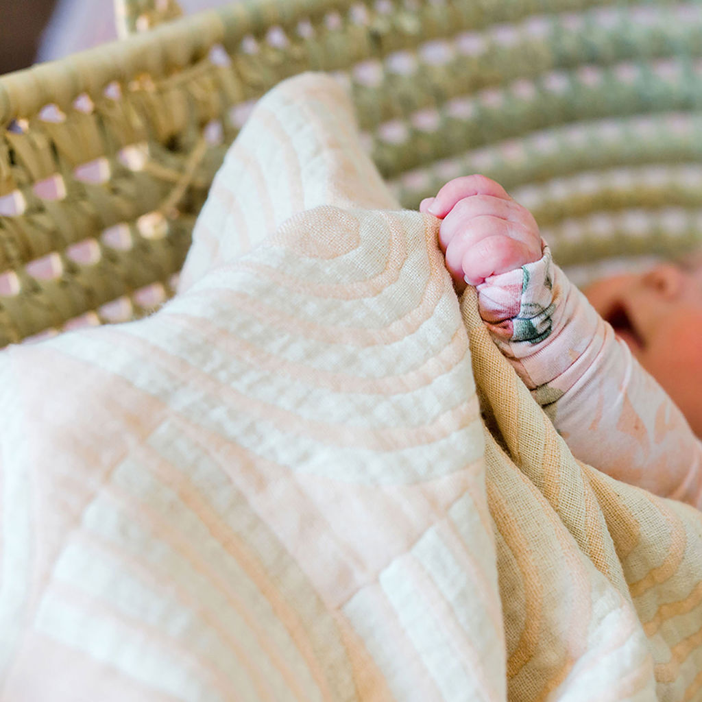If you love rainbows but you're looking for a neutral way to display them, the Parker Jacquard Muslin Baby Blanket in the Rainbow print is perfect for you.