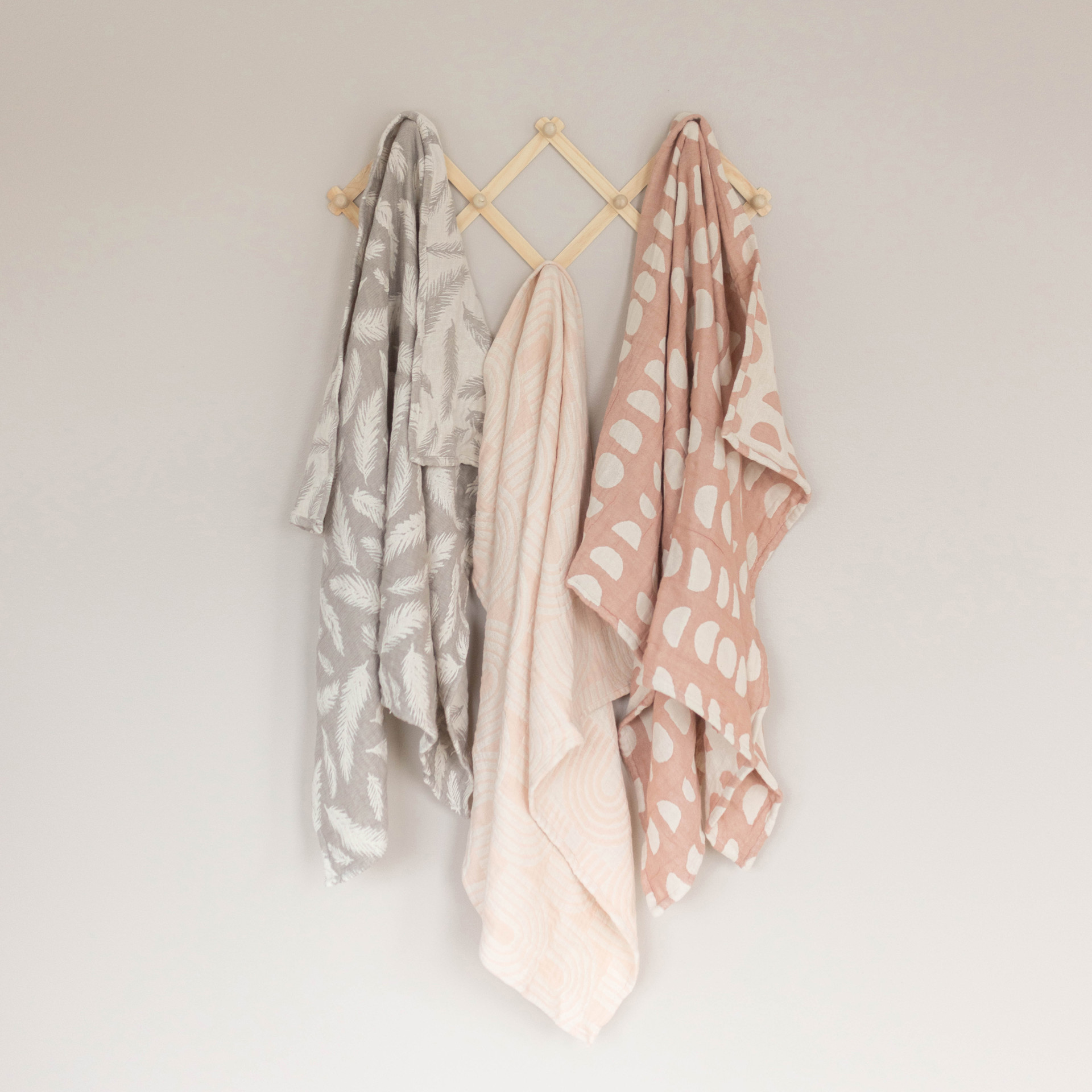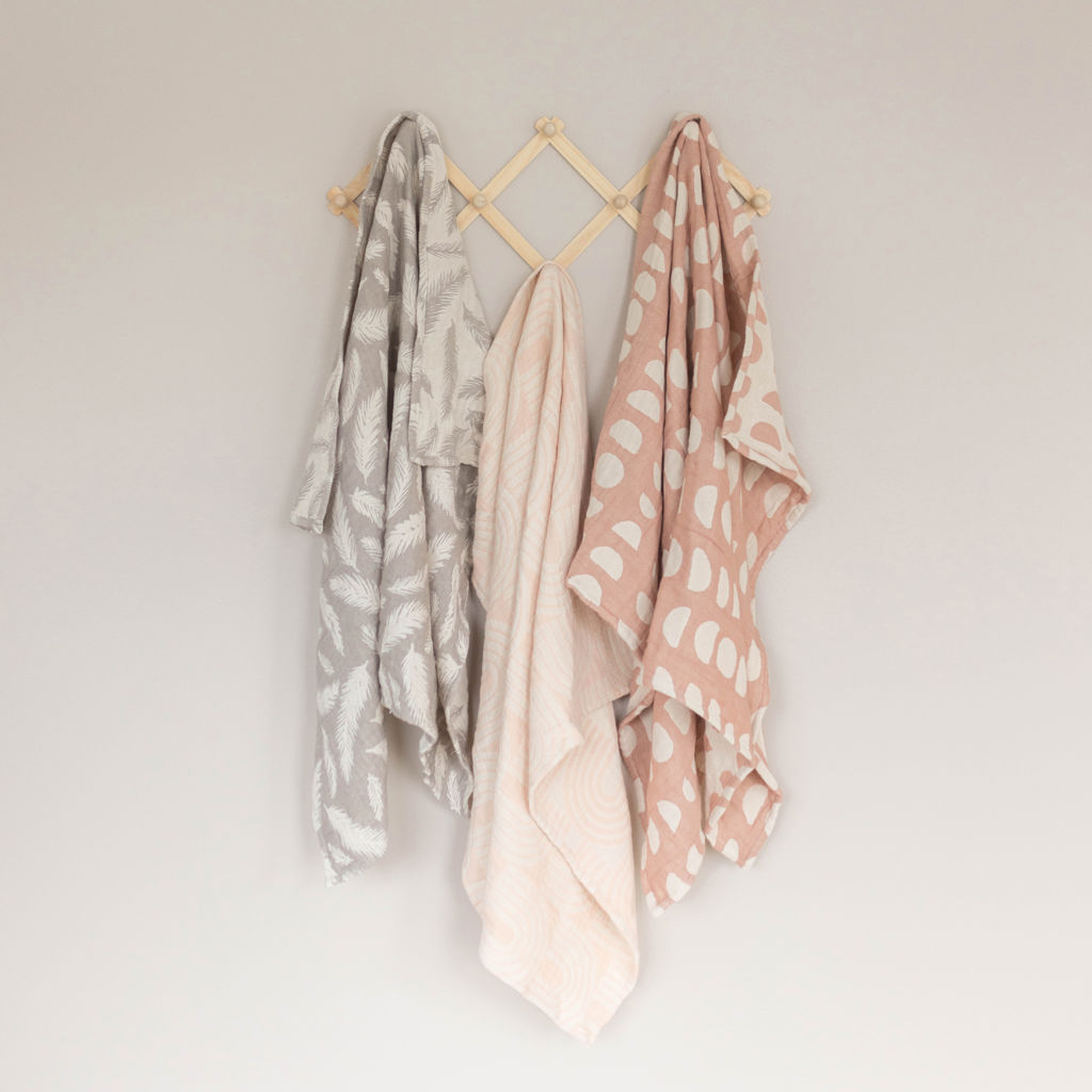 It features light pink rainbows on a soft comfy blanket and makes the perfect accent for your rocking chair, or can be taken along on a walk with baby. This gorgeous swaddle will also pair beautifully with many of the Crane Baby bedding sets for a curated look.