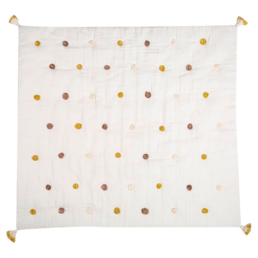 If you're looking for a truly classy piece to add to your baby's nursery, look no further than the Kendi Pom Pom Quilted Baby Blanket. It comes in a beautiful light shade with handmade pom poms as accenting. The blanket would look lovely draped over your rocking chair, or on the floor for a more comfy tummy time playmat.