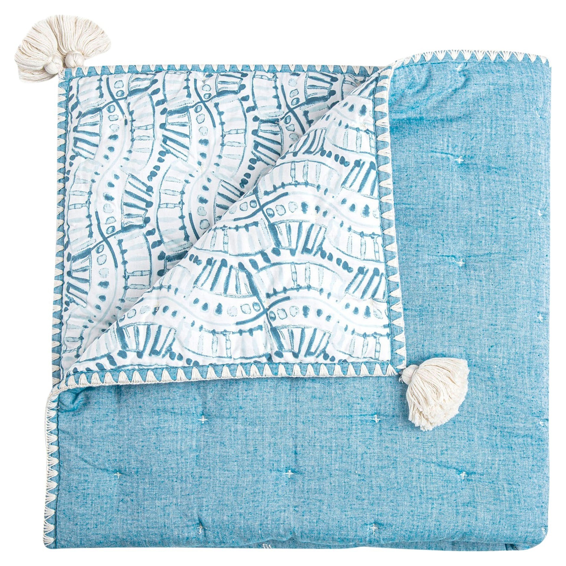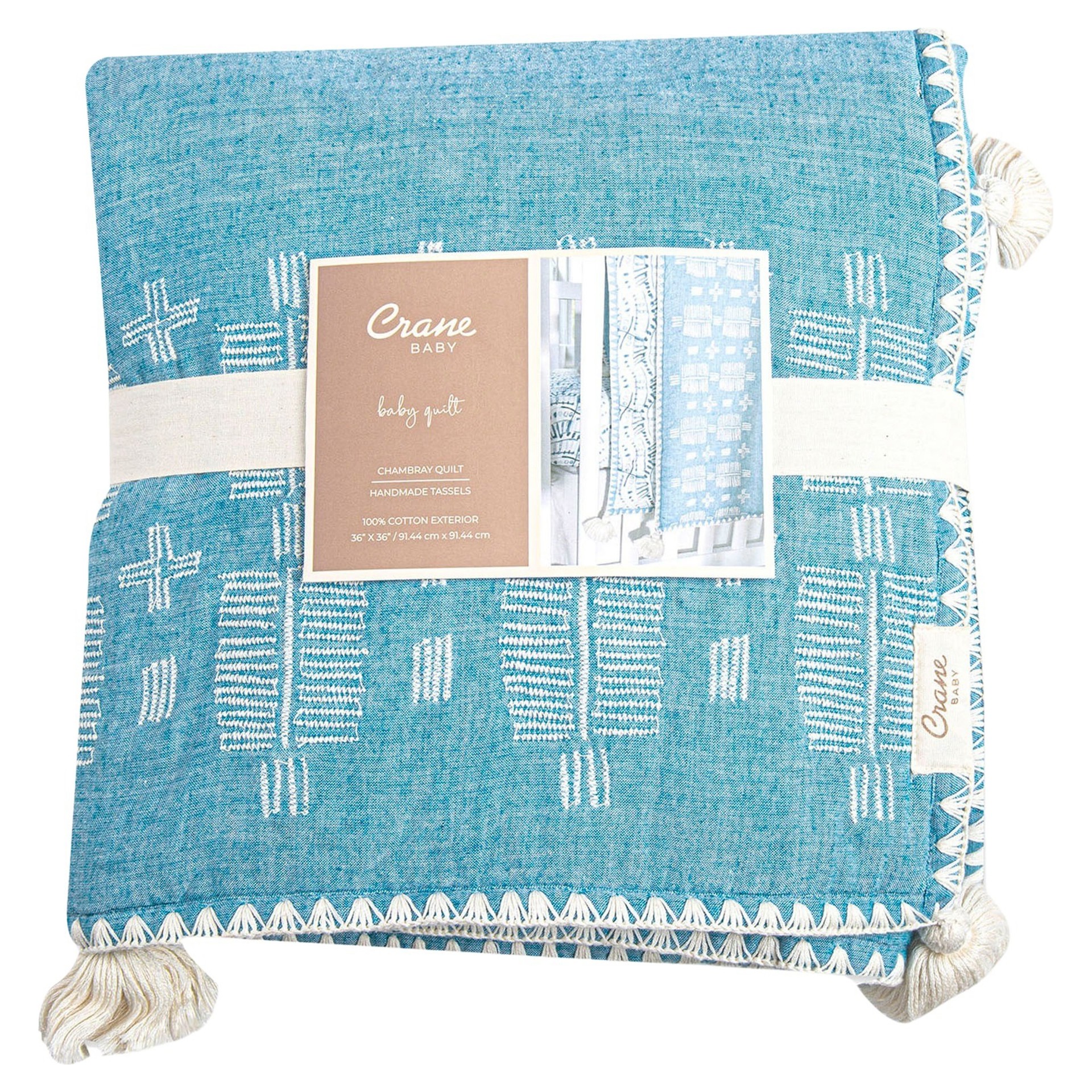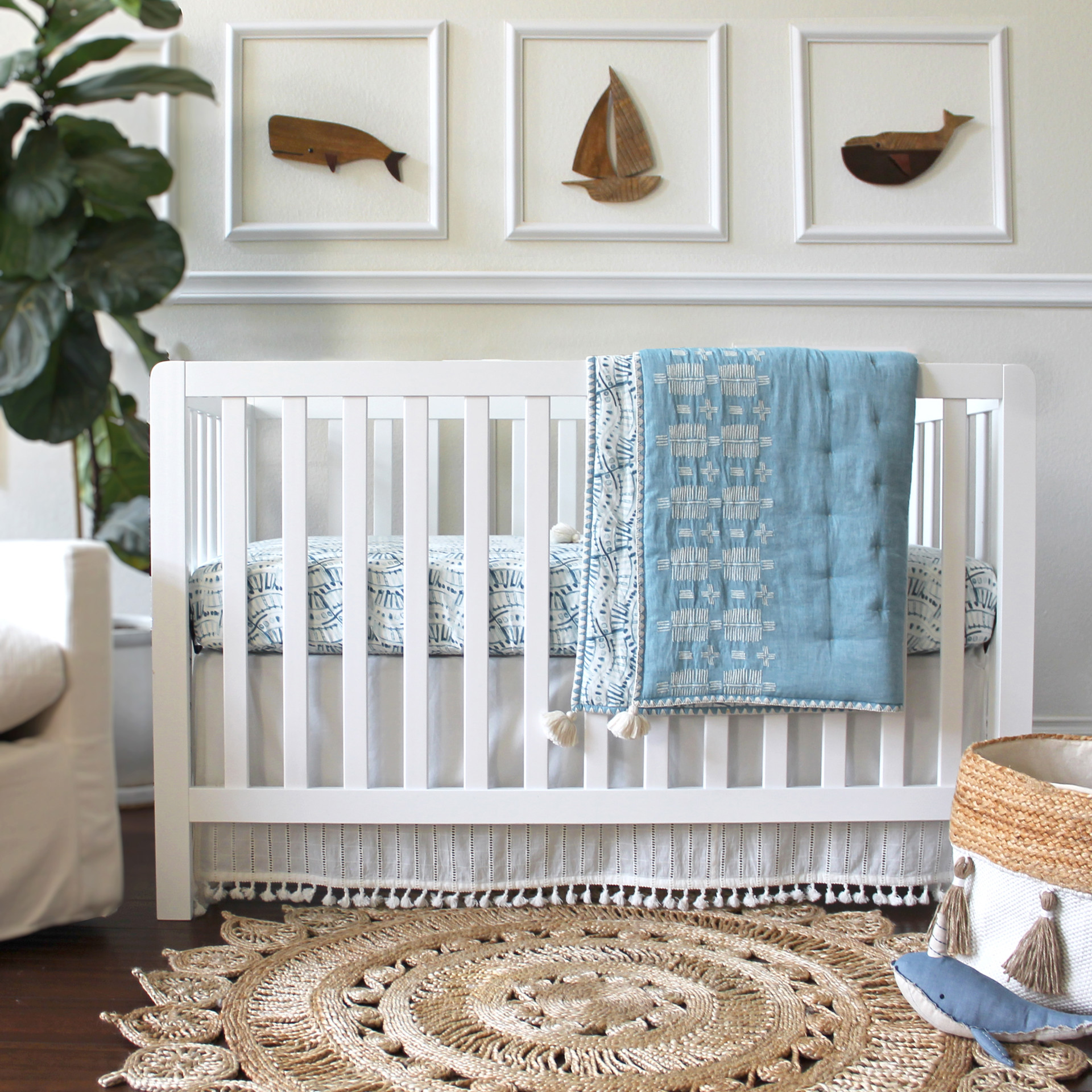If you love our Caspian Collection, you will love the Caspian Quilted Baby Blanket. It features handmade detailing as well as a palette of peaceful blue shades that will help create a tranquil nursery for baby.