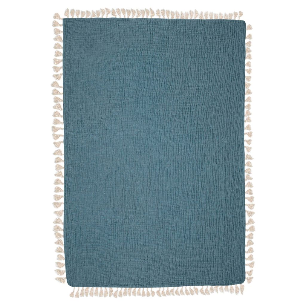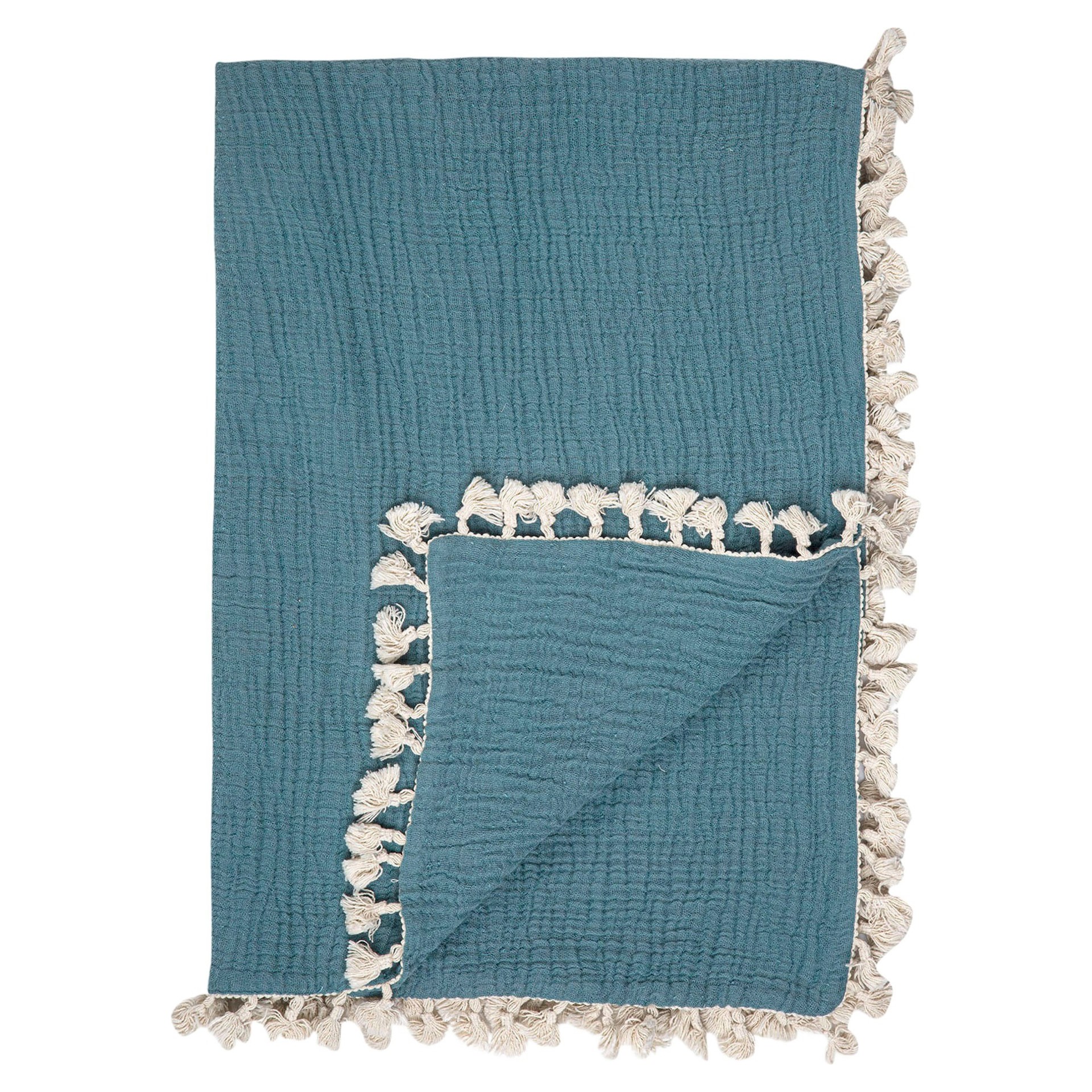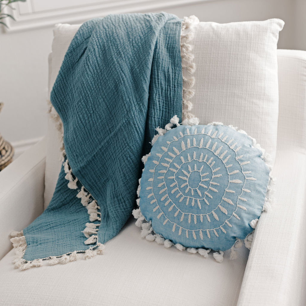 It comes in a gorgeous shade of blue and includes tassel trim along the edges to add texture. Keep it on your rocking chair and grab it when you're headed out for a walk.