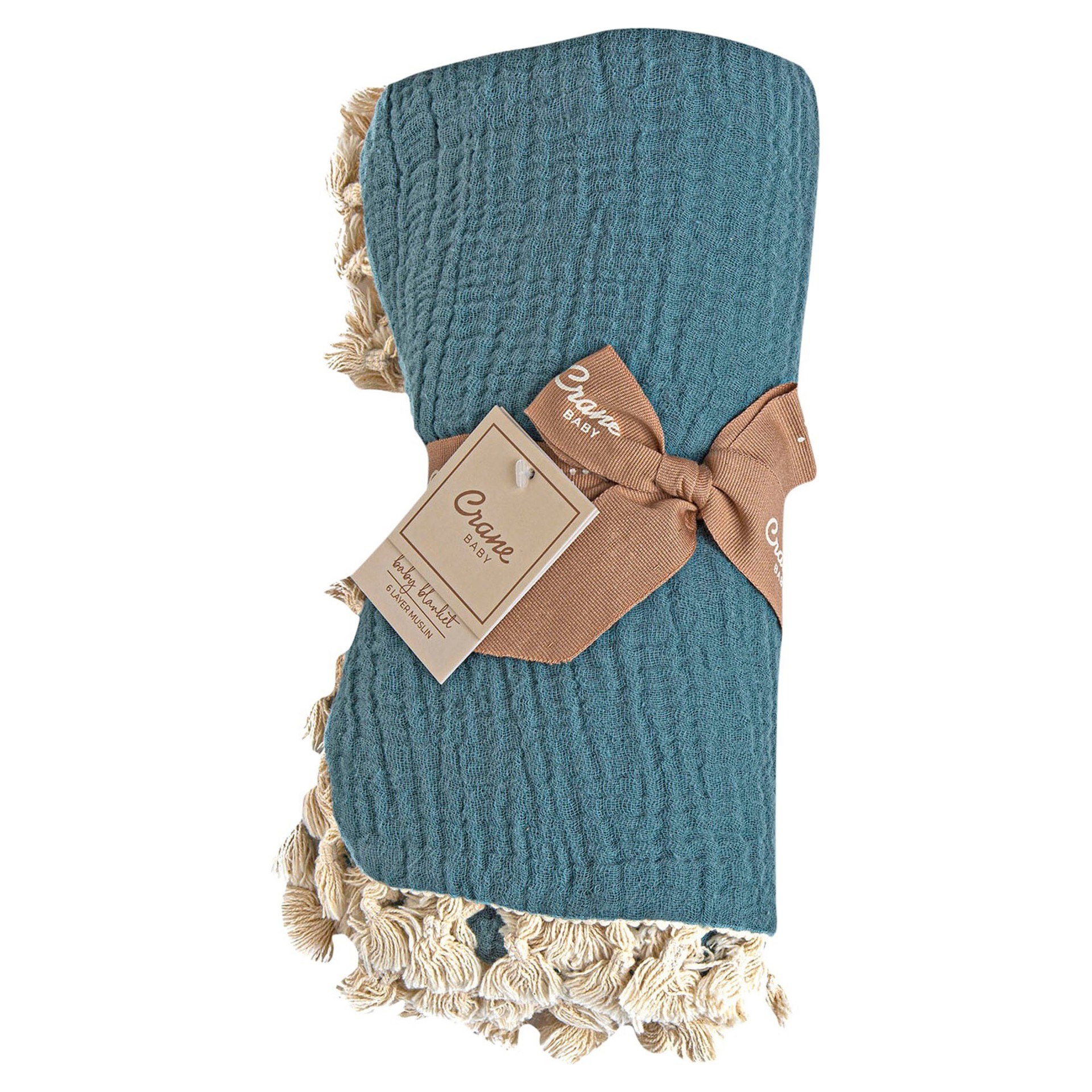 Peace, tranquility and calm are all things that come to mind when we see the colour blue. If you are looking to add a splash of blue accenting baby's nursery, the 6 Layer Muslin baby blanket in Riverstone is just what you need.