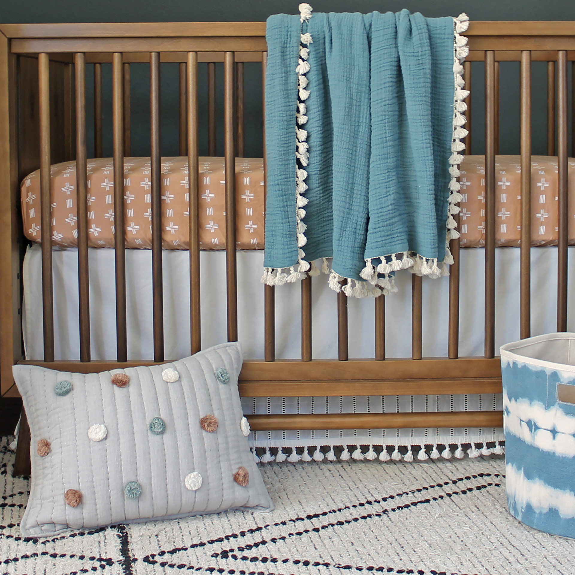 The blanket is lightweight and easy to throw into a bag, yet it will keep baby snug and warm. This blanket will also pair beautifully with many of our baby bedding sets (sold separately), for a curated look.
