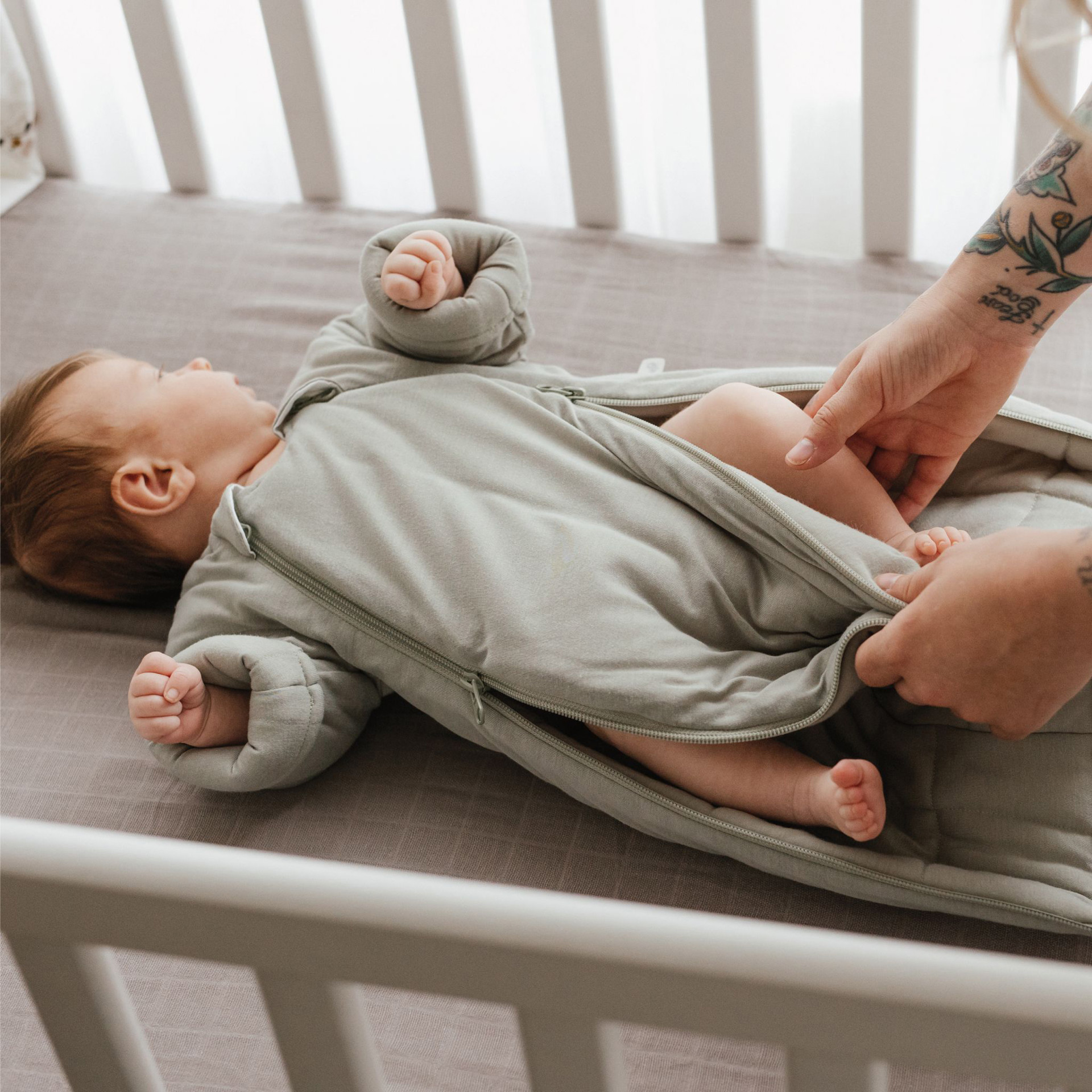 In general, babies are ready to give up swaddling when they begin to show a desire for greater mobility while needing a safe, cozy sleeping space... And it is usually where the sleep suit comes to play!