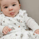 The fabric, made of 70% bamboo viscose and 30% cotton, is ideal for babies with allergies or eczema. It contains enough bamboo to preserve the unique properties of this natural fiber and just enough cotton to enhance durability. Baby’s comfort is guaranteed!