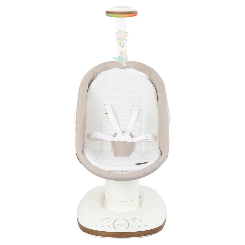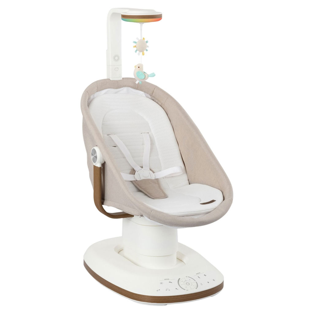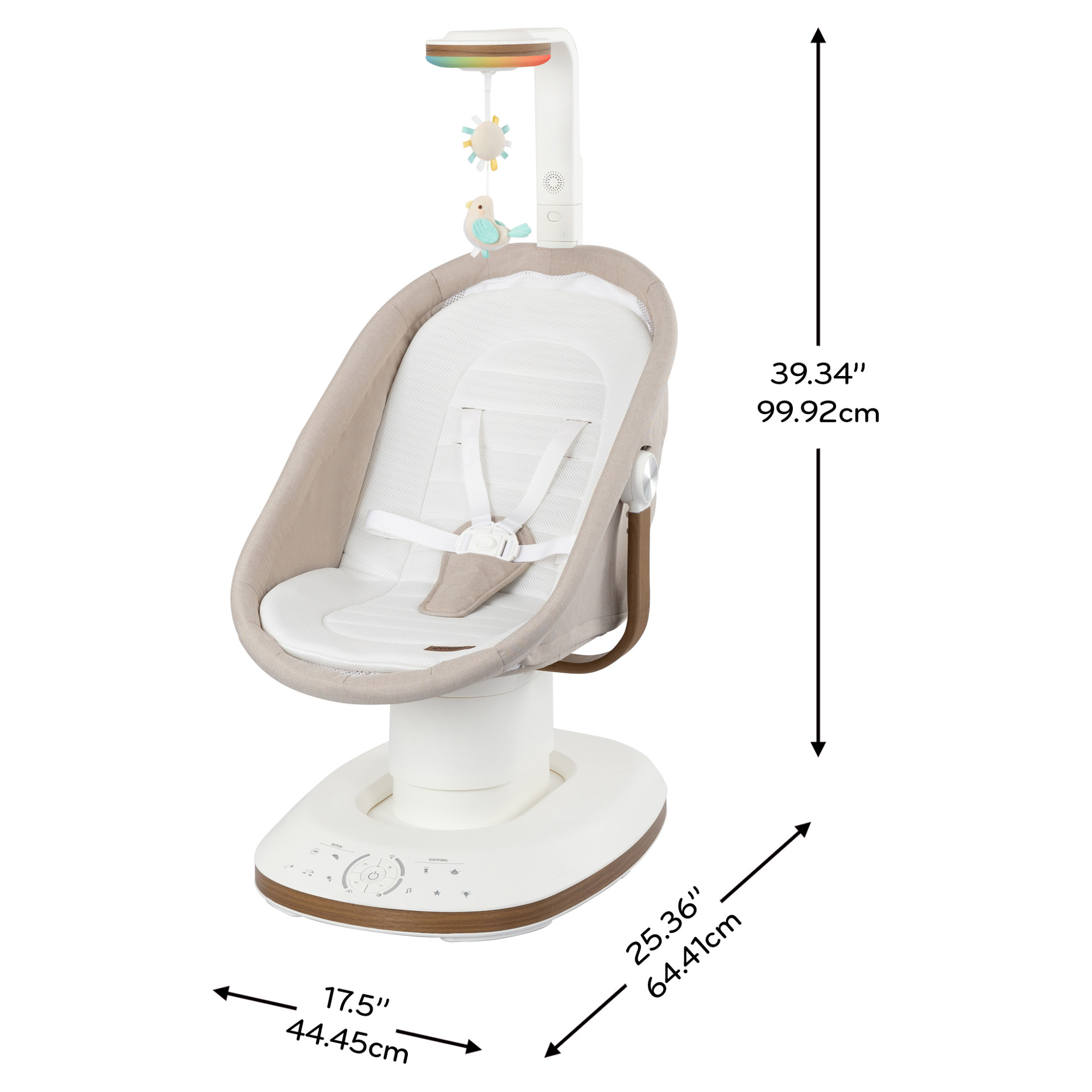 Create a fully customized experience with 10 different motions, 5 adjustable speeds, and 90° rotation to fine-tune positioning and movement for optimal soothing. Its refined design features breathable mesh fabric, machine-washable materials, and elegant wood-look accents that blend seamlessly into any home décor.