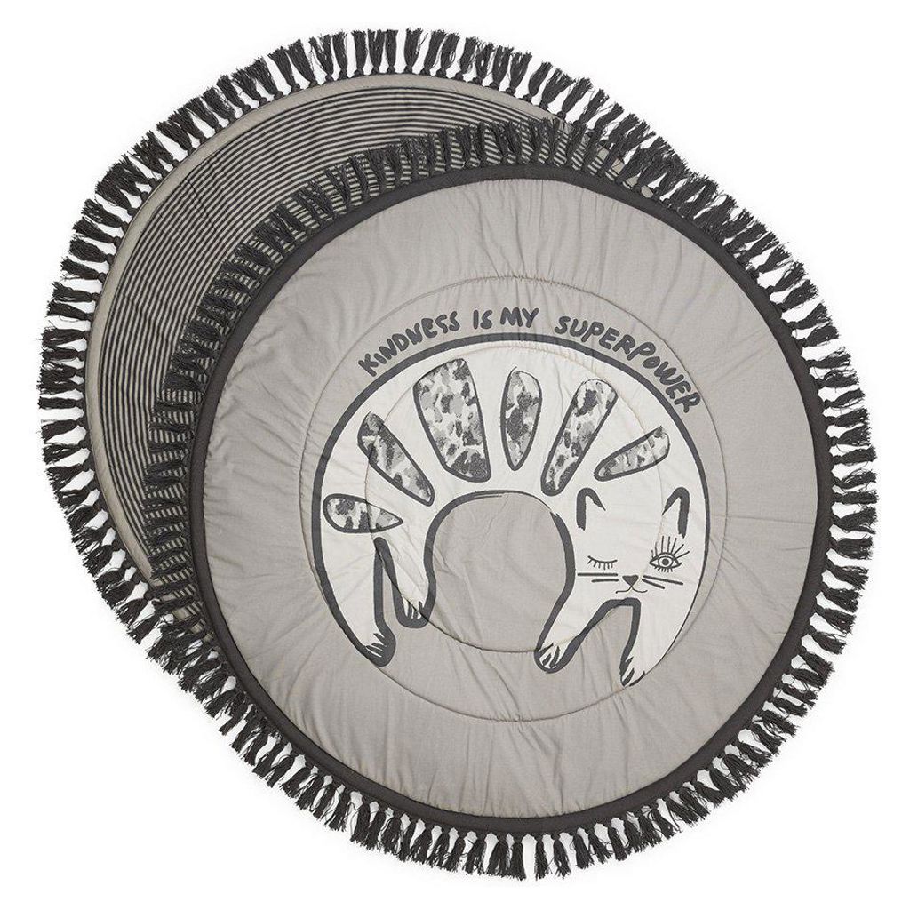 Measures 120 cm in diameter. Material: 100% cotton, 100% polyester padding Extra: can be machine washed at 40 degrees