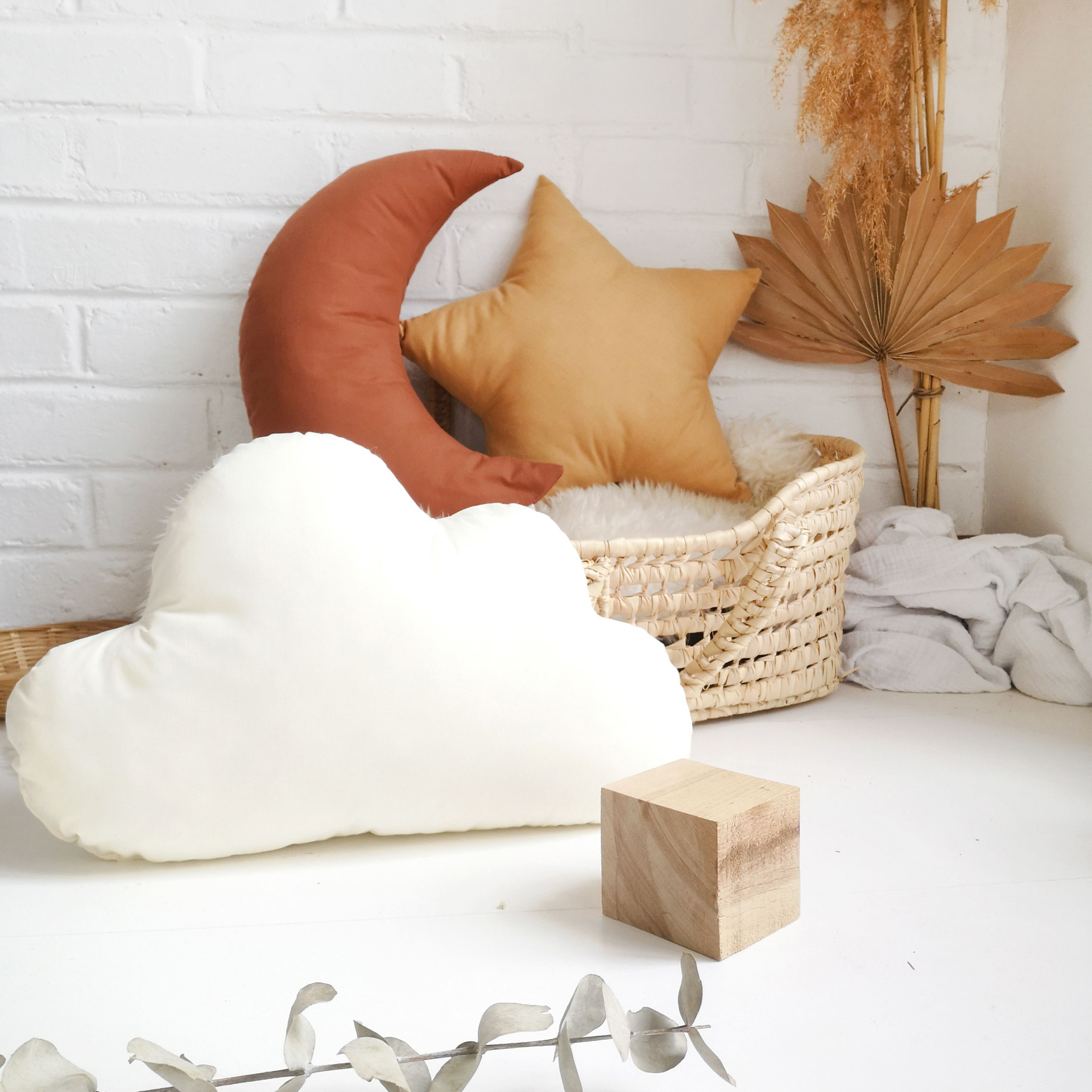 Tiny decorative pillows in the shape of a cloud.