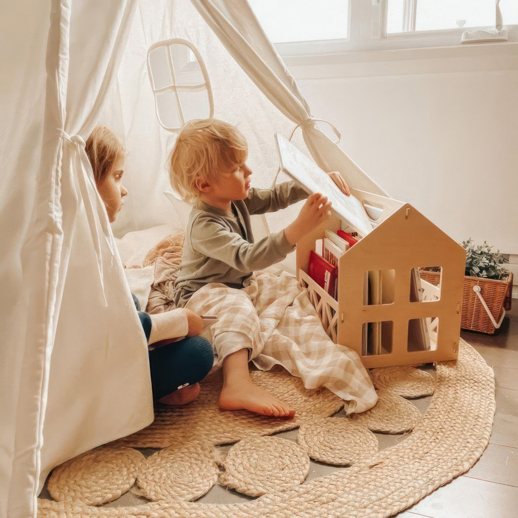 The playhouse containing 2 sections can accommodate 20 to 25 books.