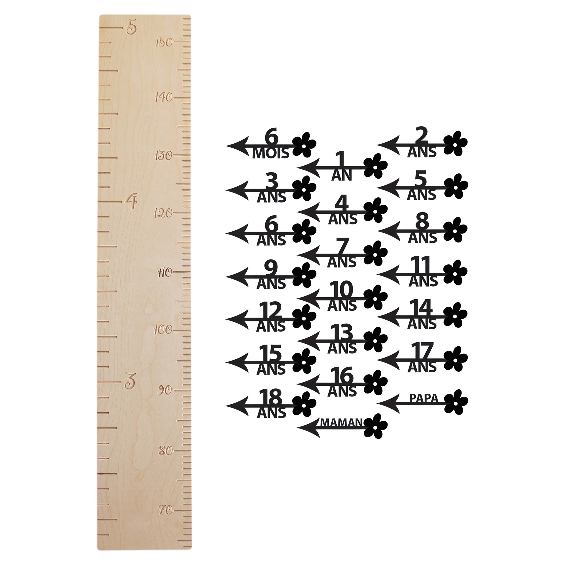The black stickers allow you to mark your growth scale from 6 months to 18 years.