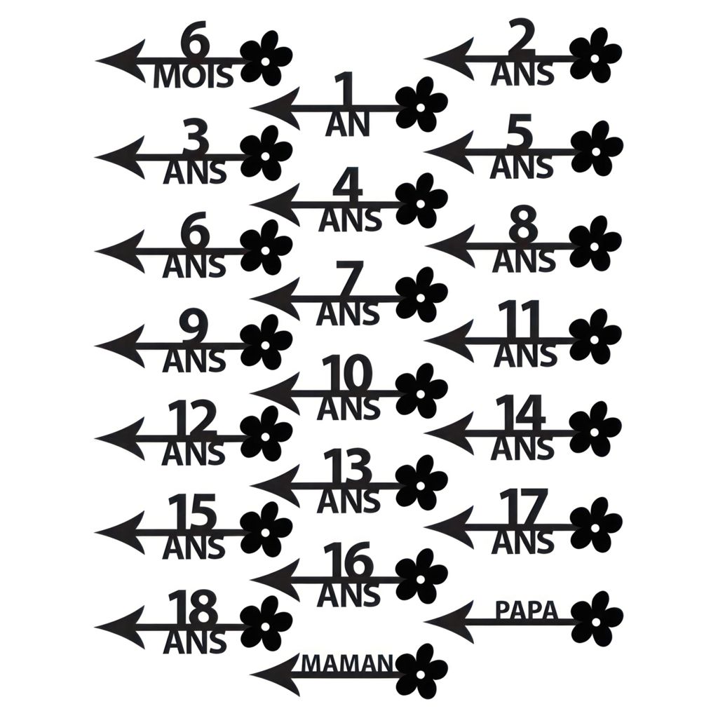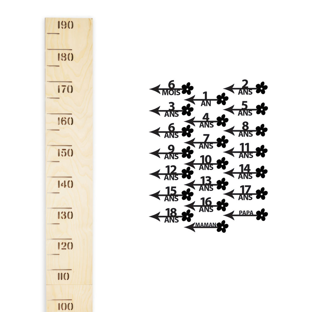 The black stickers allow you to mark your child's growth from 6 months to 18 years.