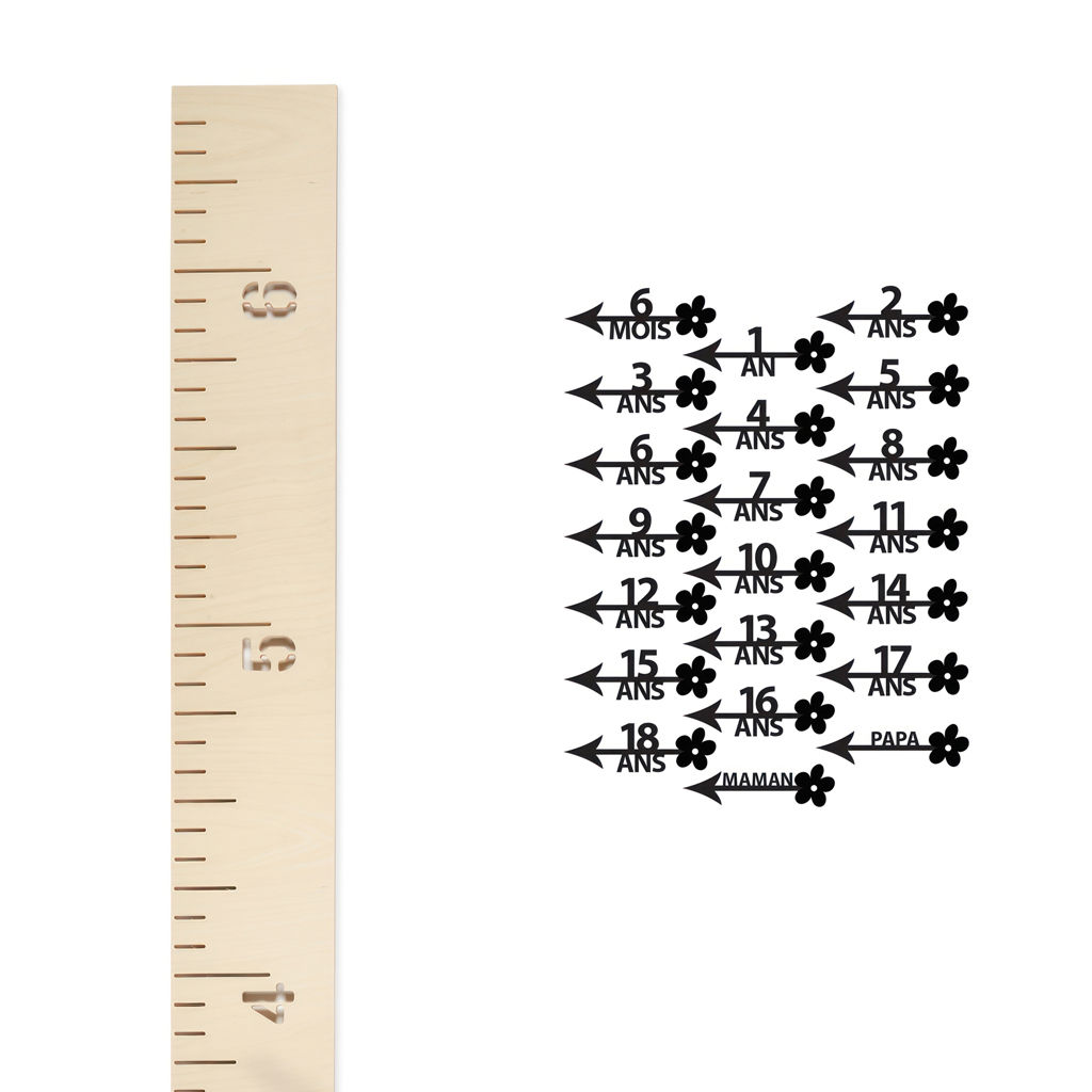 The black stickers allow you to mark your growth scale from 6 months to 18 years.