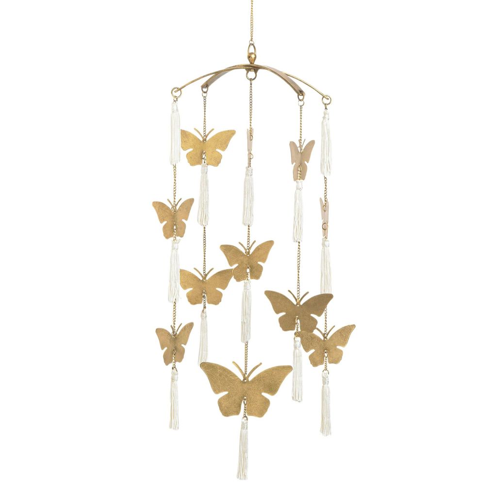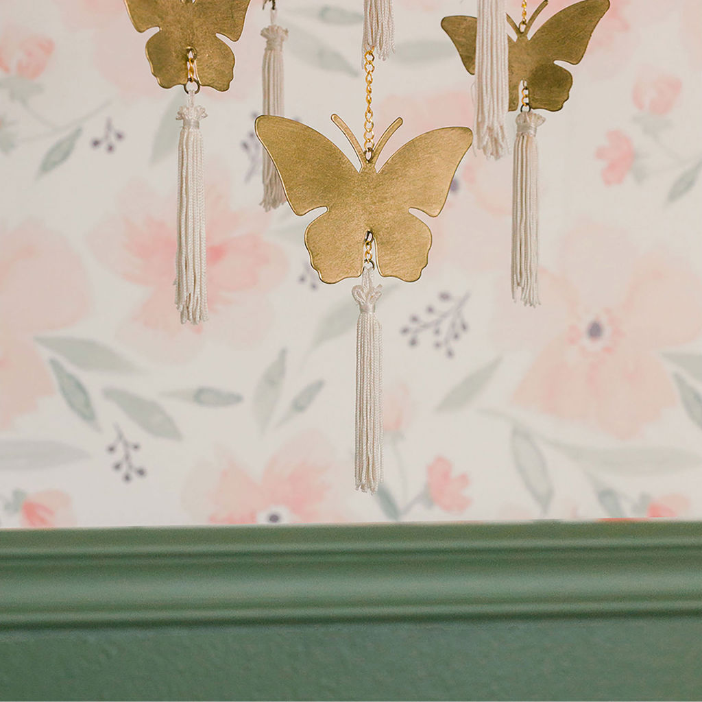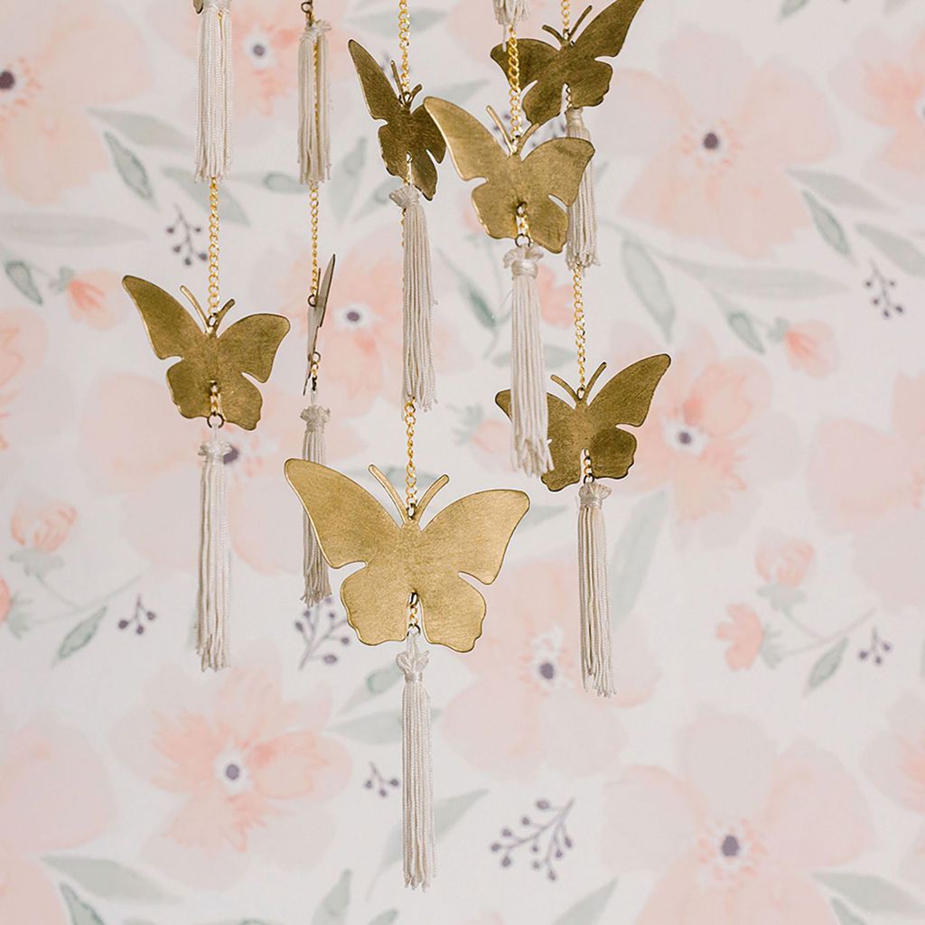 If you love the whimsical look and feel of nature, this butterfly ceiling hanging will be the perfect nursery décor. This handcrafted ceiling hanging décor will capture your baby's attention and create a lovely focal point for your nursery.
