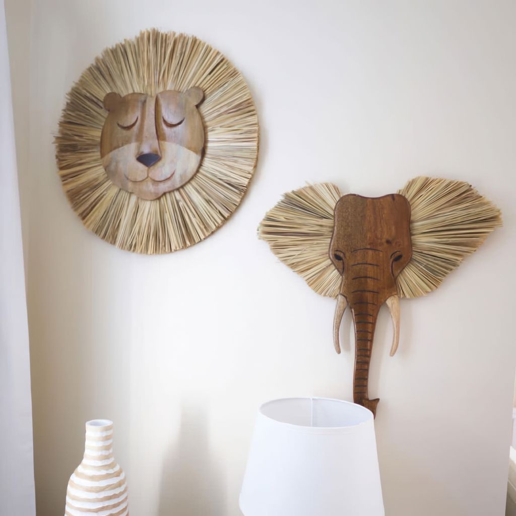 Handmade detailing paired with the natural materials of these pieces perfectly complement our Crane Baby bedding sets (sold separately) for a curated look. The charm and elegance of this nursery wall decor makes it a must-have for any safari or animal-themed nursery.