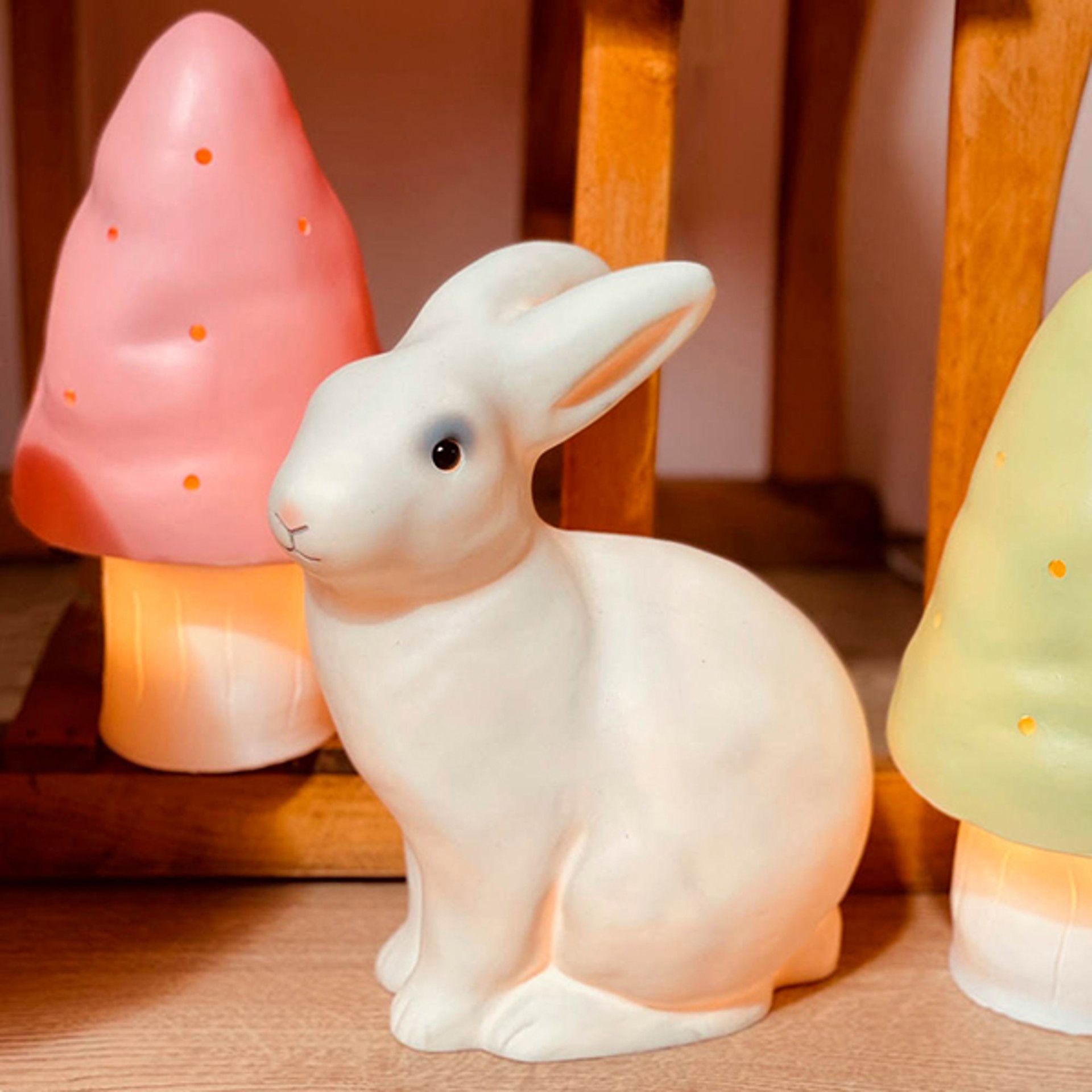 This rabbit night light creates a world of dreams and tenderness! It helps little ones fall asleep peacefully and without fear, while also beautifully decorating their bedroom or any other room in the home. Its soft, gentle glow creates a cozy atmosphere, and it is just as lovely when lit as when turned off.