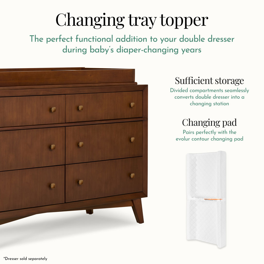With its built-in compartments, it easily transforms your dresser into a convenient changing station, keeping all essentials within easy reach.
