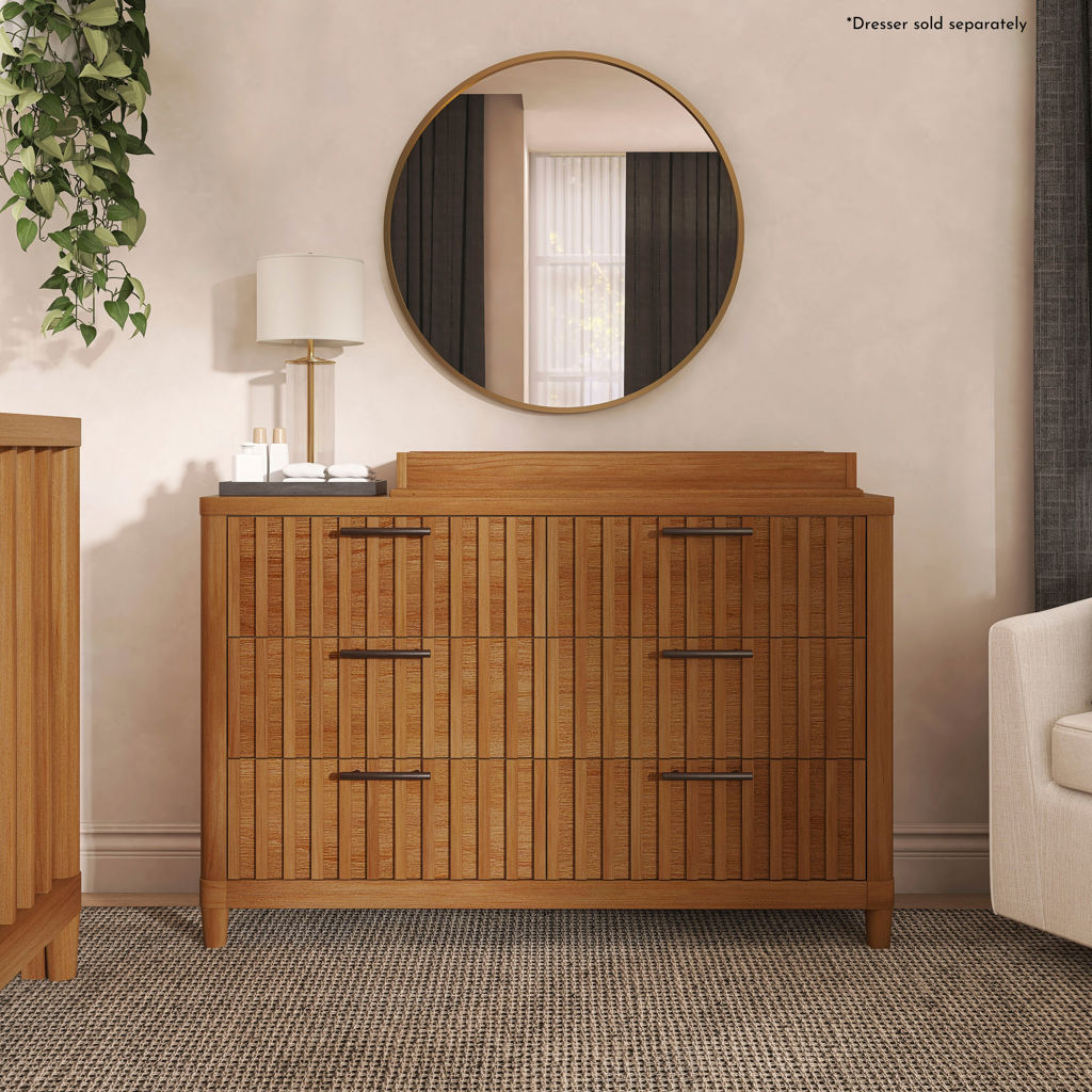 Carefully crafted with a matching natural wood finish, this changing tray brings practicality, safety, and visual harmony to your child’s room. Ideal for the early months and nighttime diaper changes, the Flynn changing tray transforms your dresser into a multifunctional space, without compromising on style.