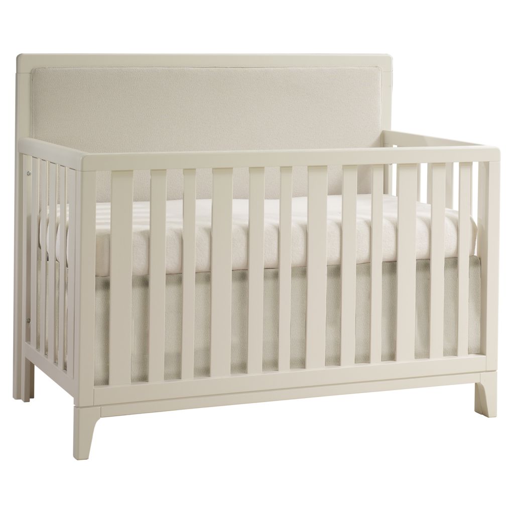 Kyoto 5-in-1 Convertible Crib with Talc Linen Weave Upholstered Panel