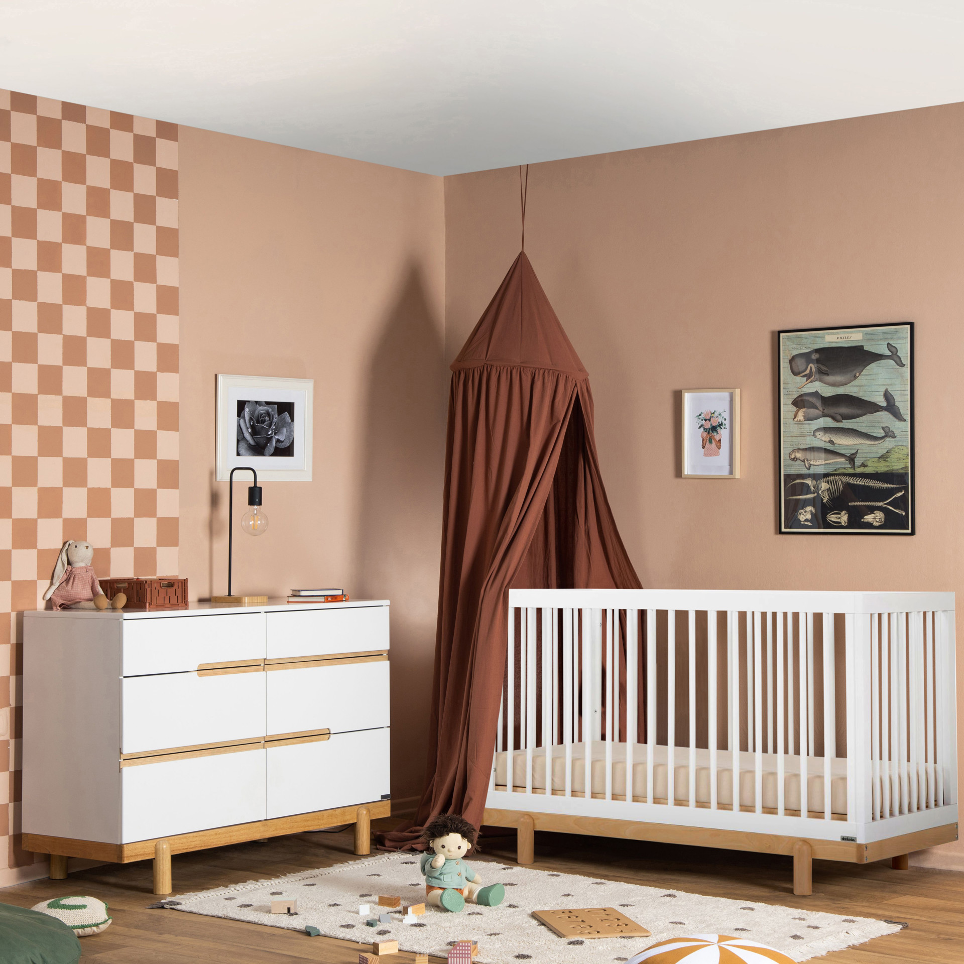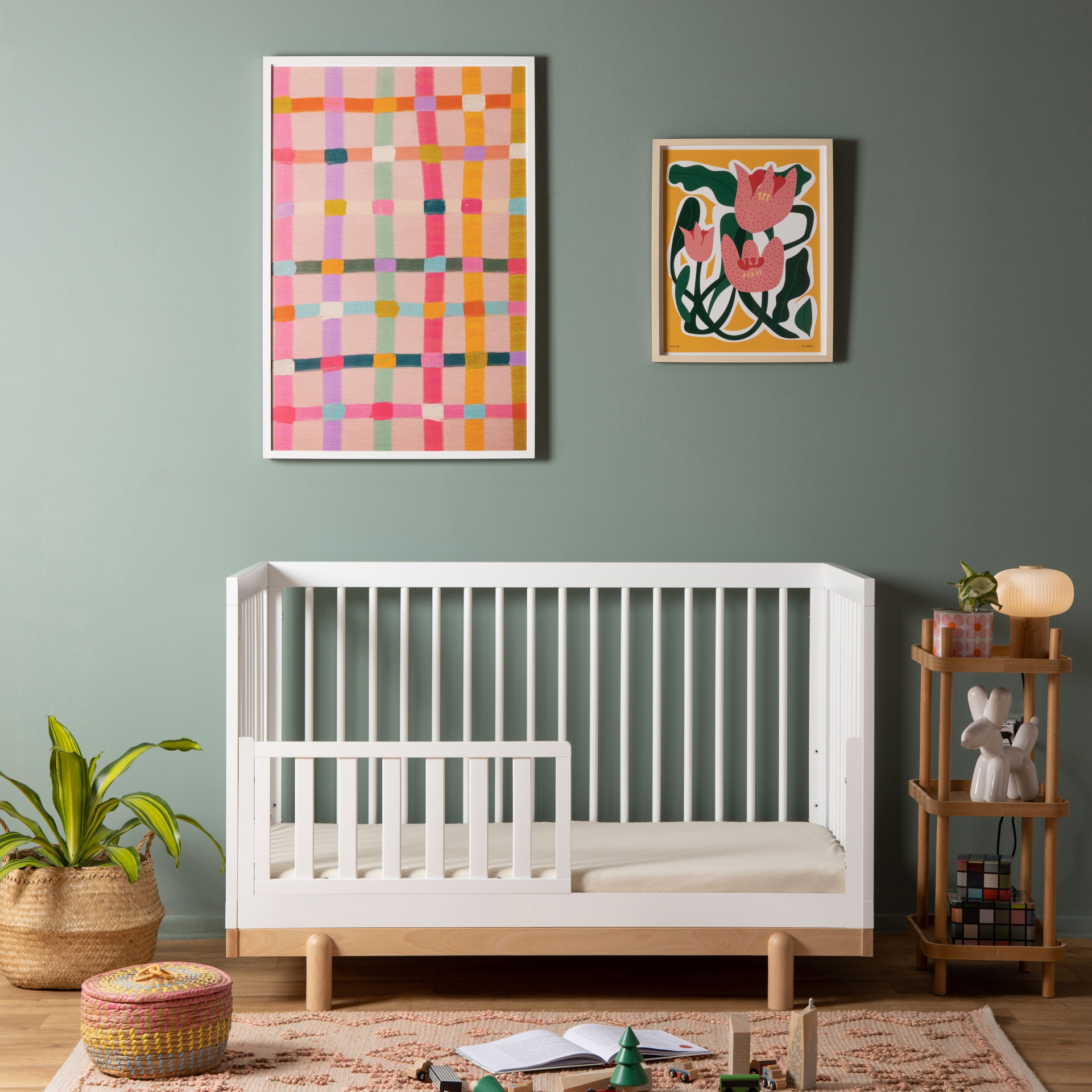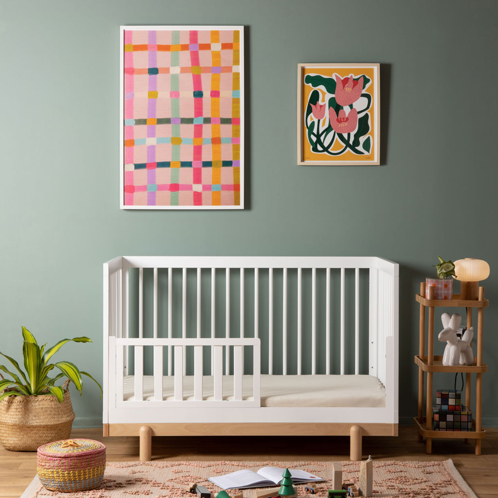 • 4-in-1 convertible crib (crib, toddler, day, and floor bed)