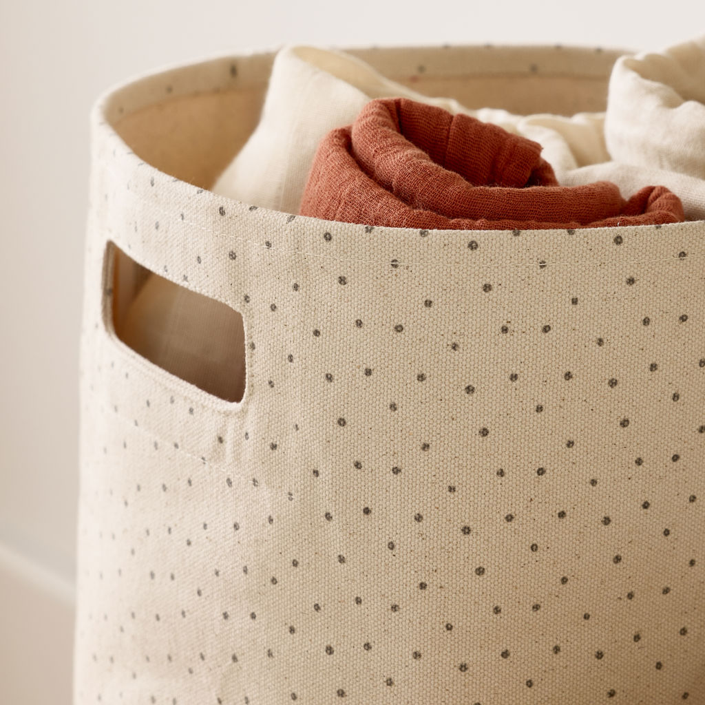 The storage basket exclusively by Pehr for Stokke.  Ideal storage space for diapers, creams and other small changing items.